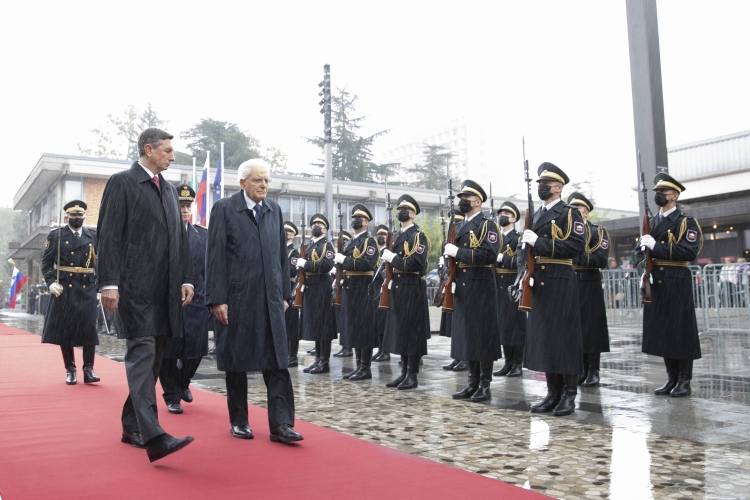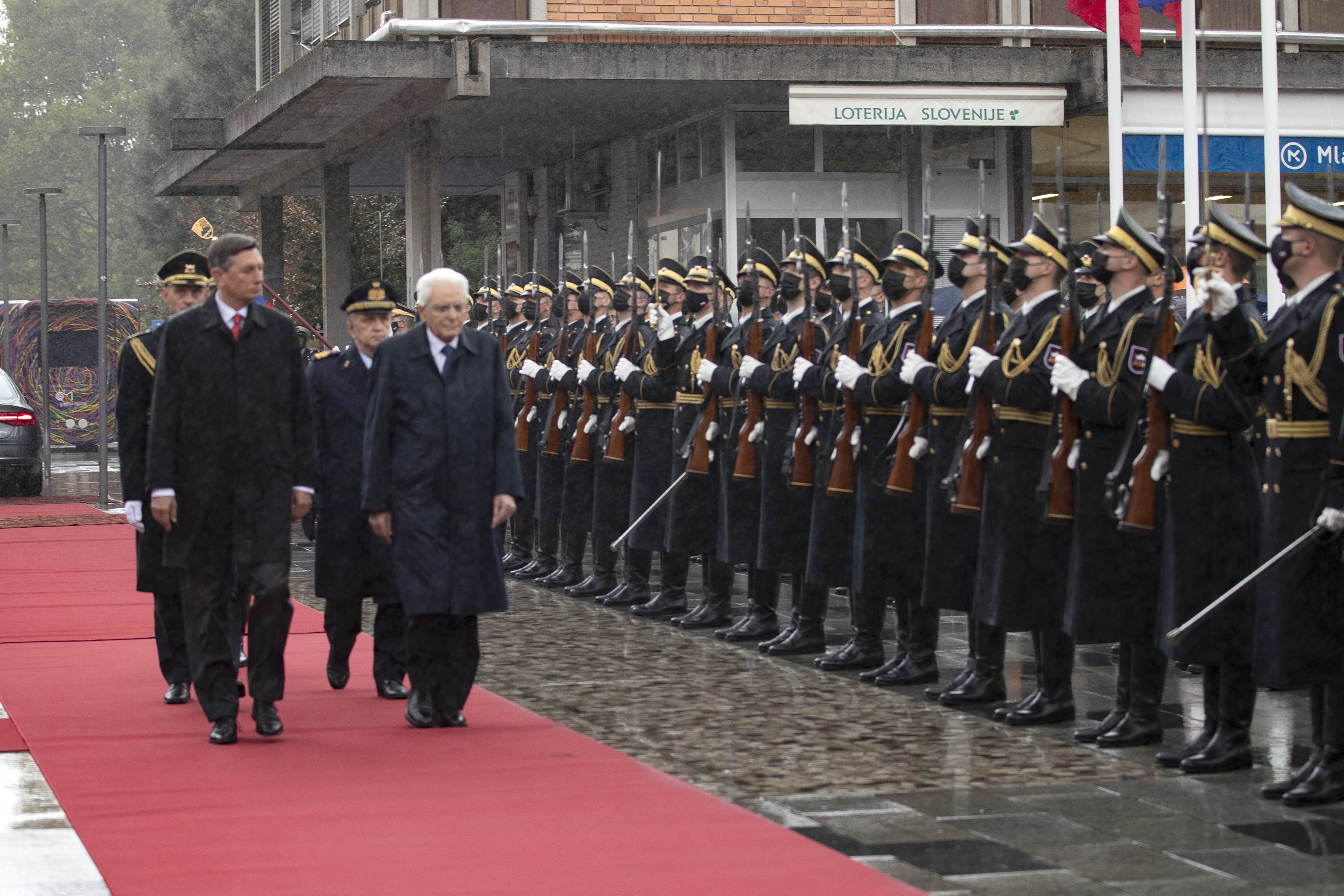 Il Presidente della Repubblica, Sergio Mattarella a Nova Gorica con Borut Pahor Presidente della Repubblica di Slovenia, durante gli onori militari
