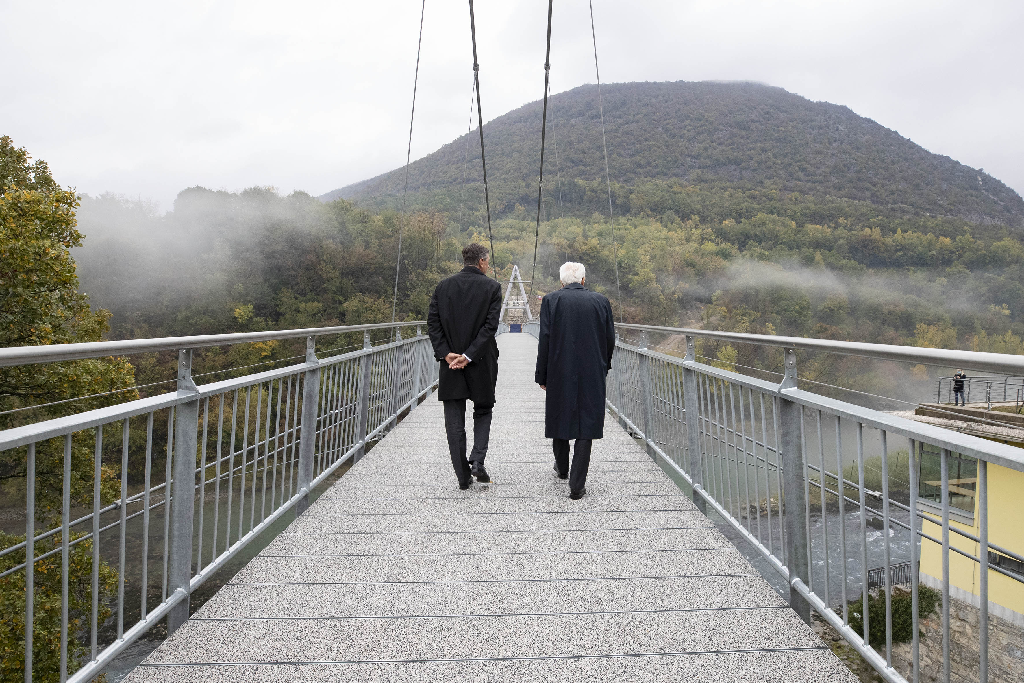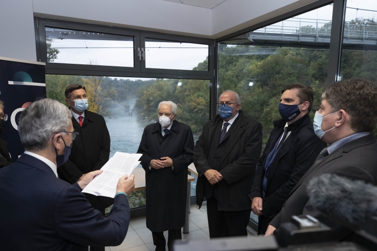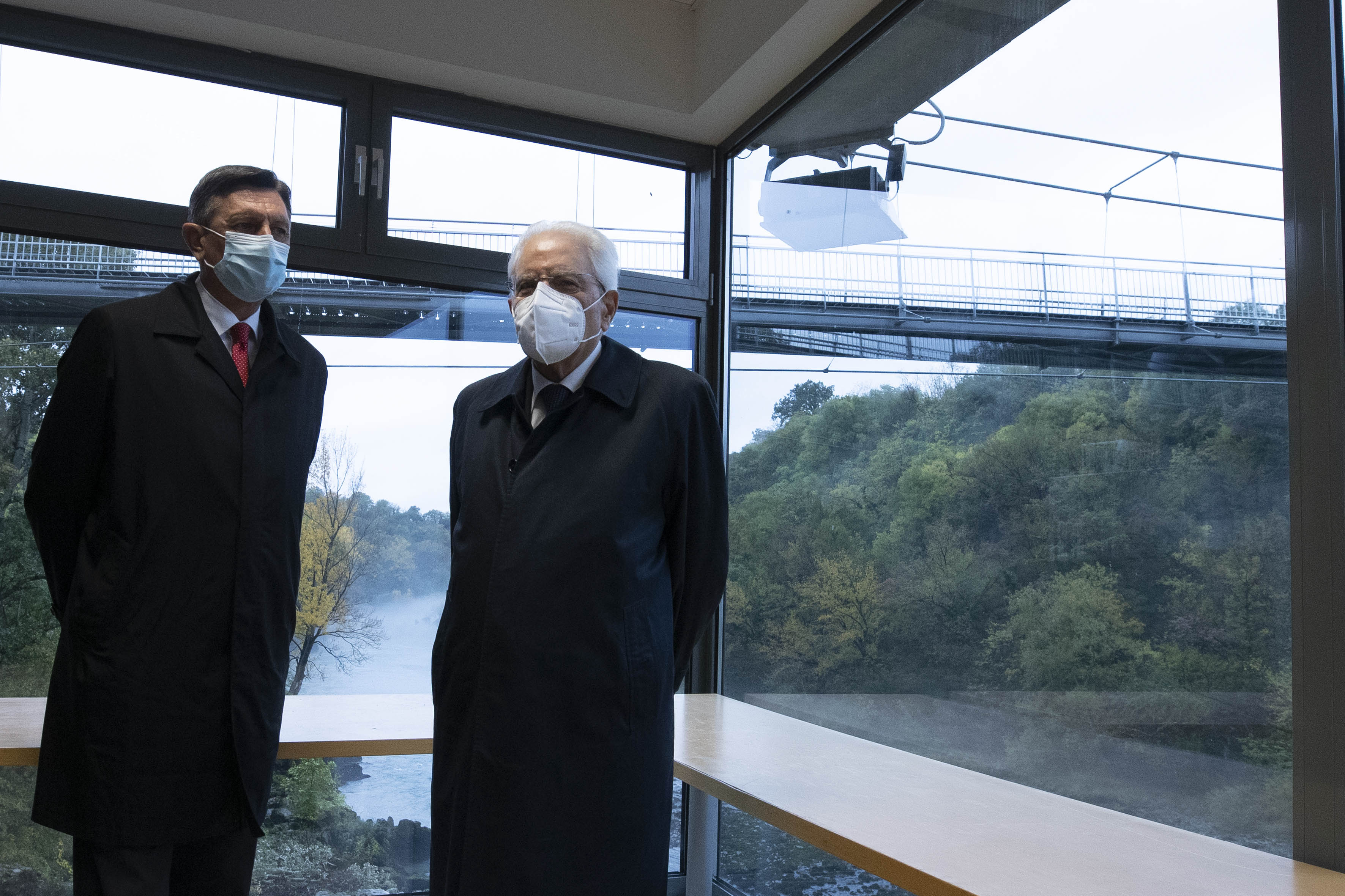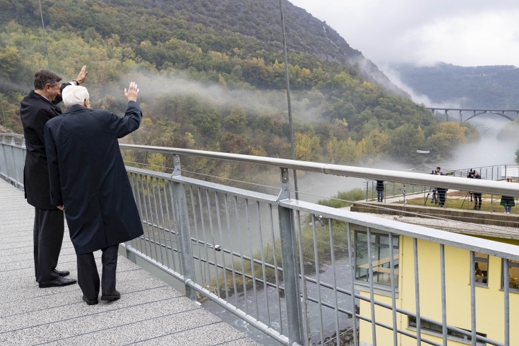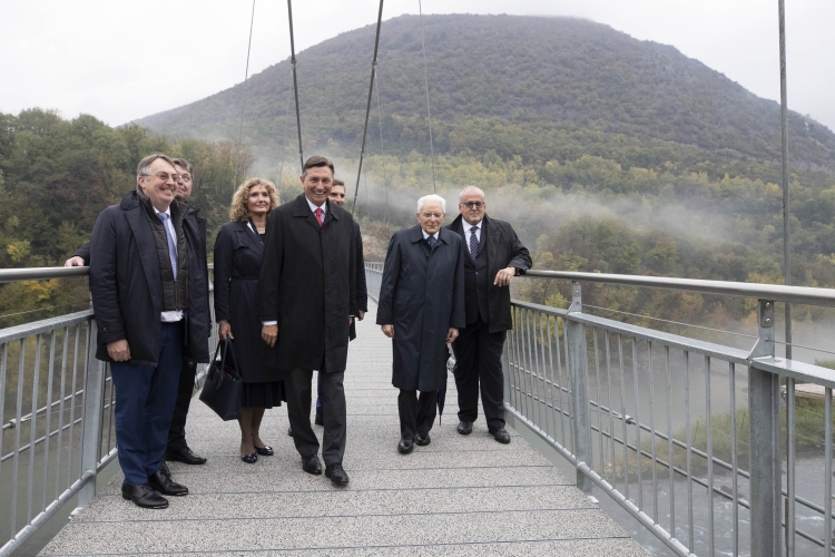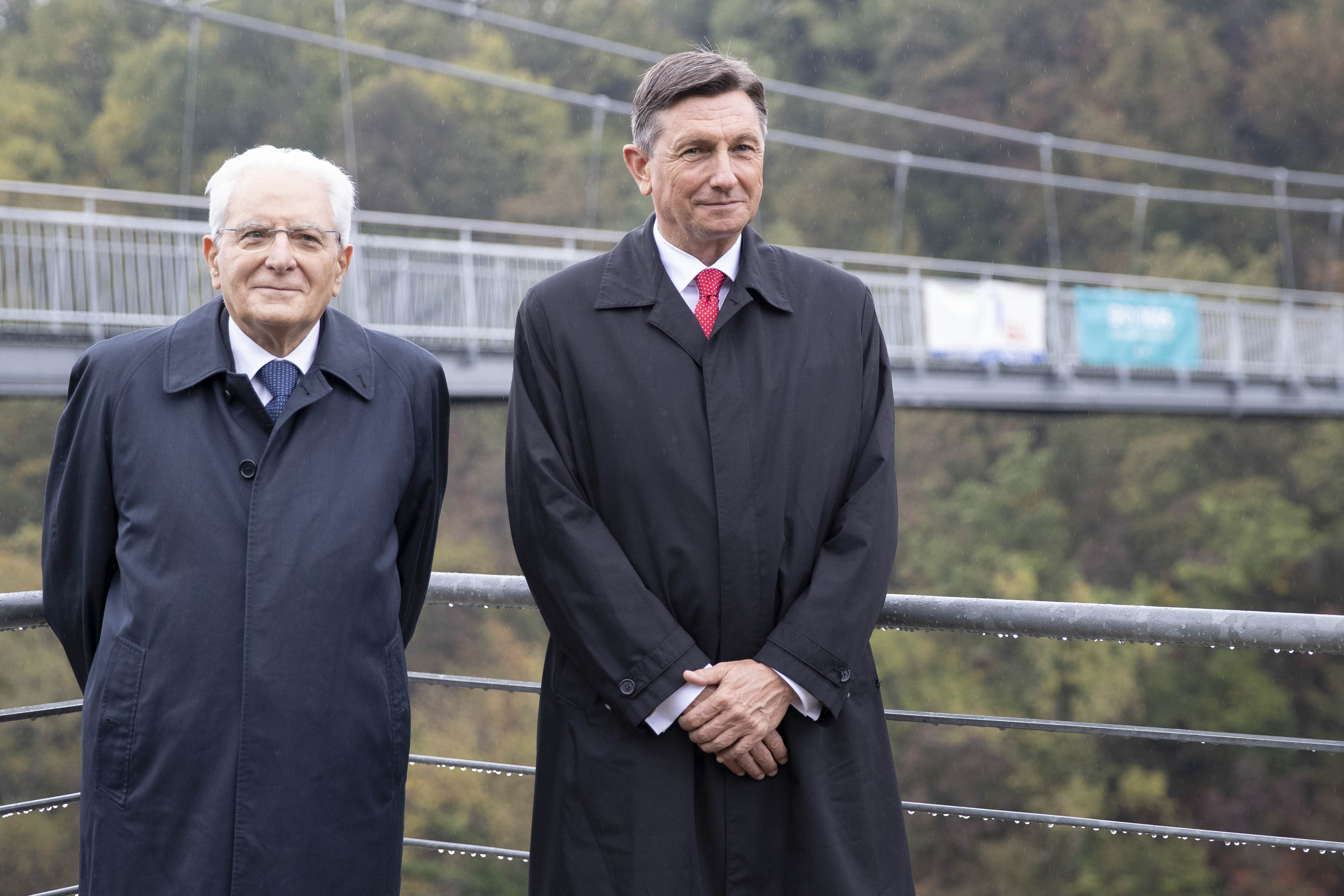 Il Presidente della Repubblica Sergio Mattarella e il Presidente della Repubblica di Slovenia, Borut Pahor, visitano il Ponte ciclo-pedonale di Salcano sull’Isonzo, nella Municipalità di Nova Gorica