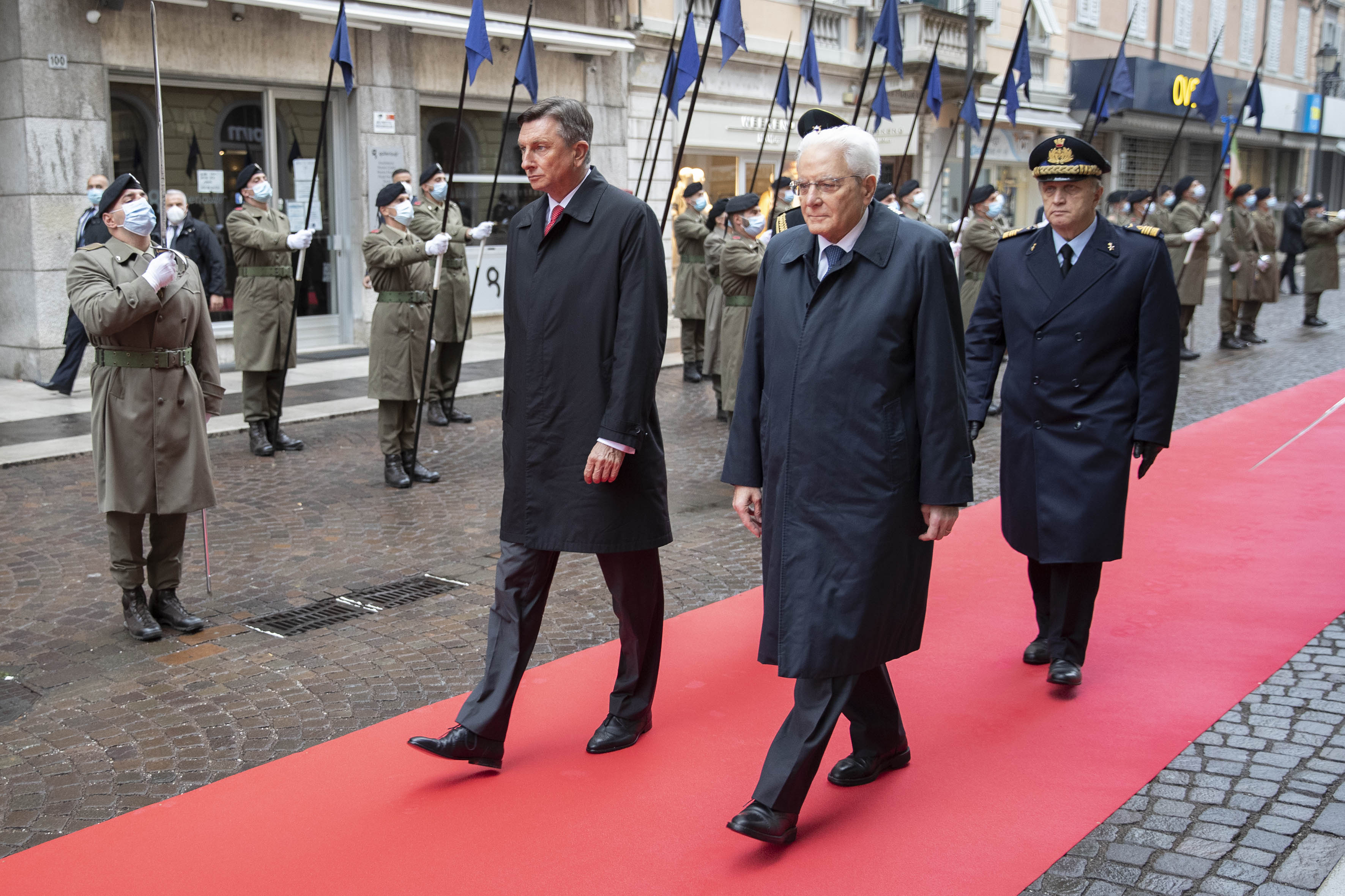 Il Presidente della Repubblica, Sergio Mattarella a Gorizia con Borut Pahor Presidente della Repubblica di Slovenia, durante gli onori militari