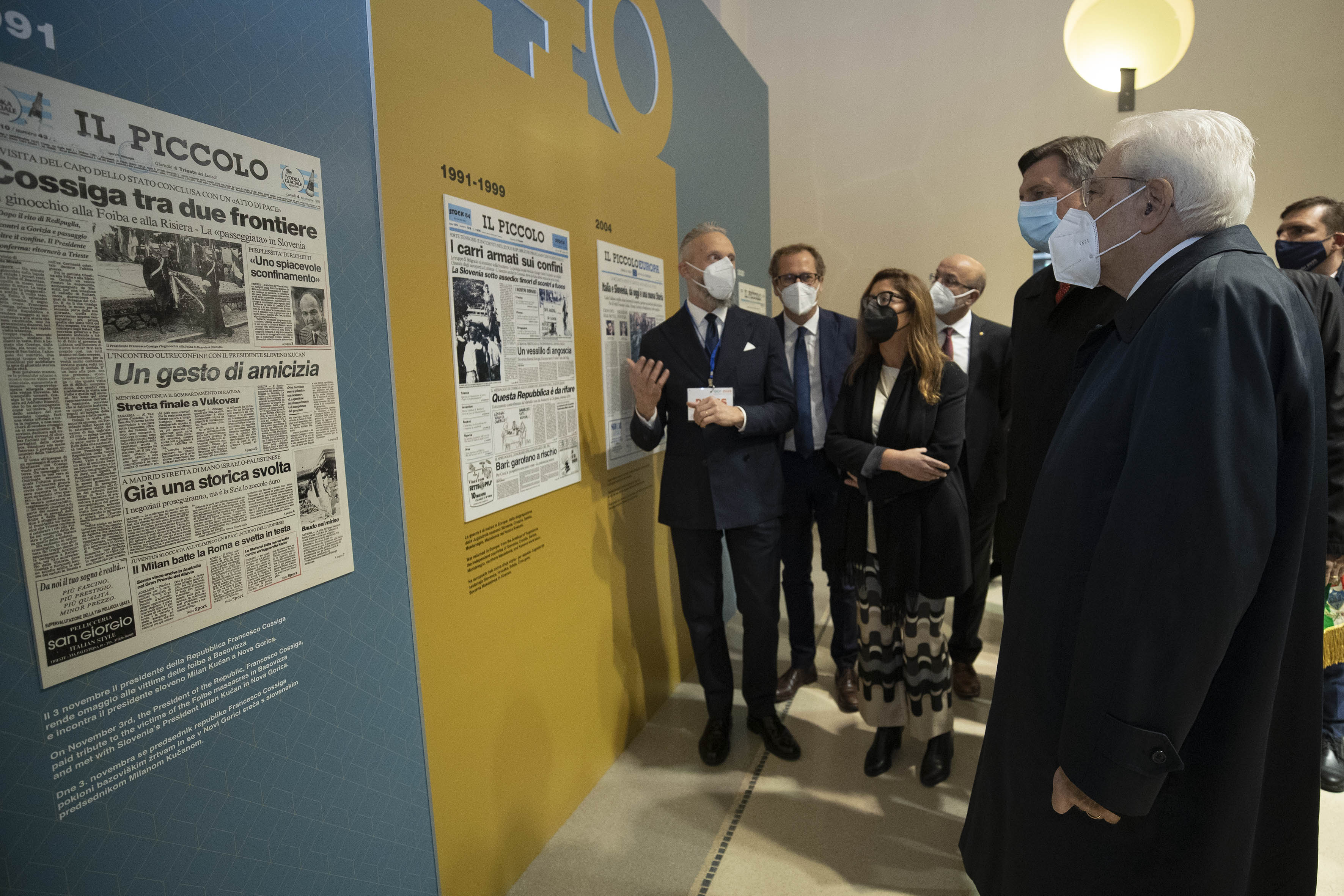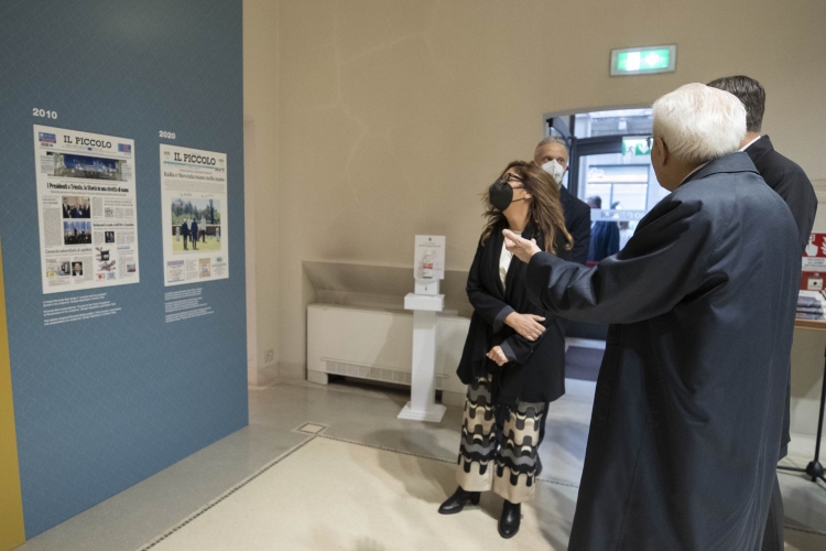 I Presidenti Mattarella e Pahor visitano, al Teatro Verdi di Gorizia, la Mostra per il 140° anniversario della fondazione del quotidiano Il Piccolo