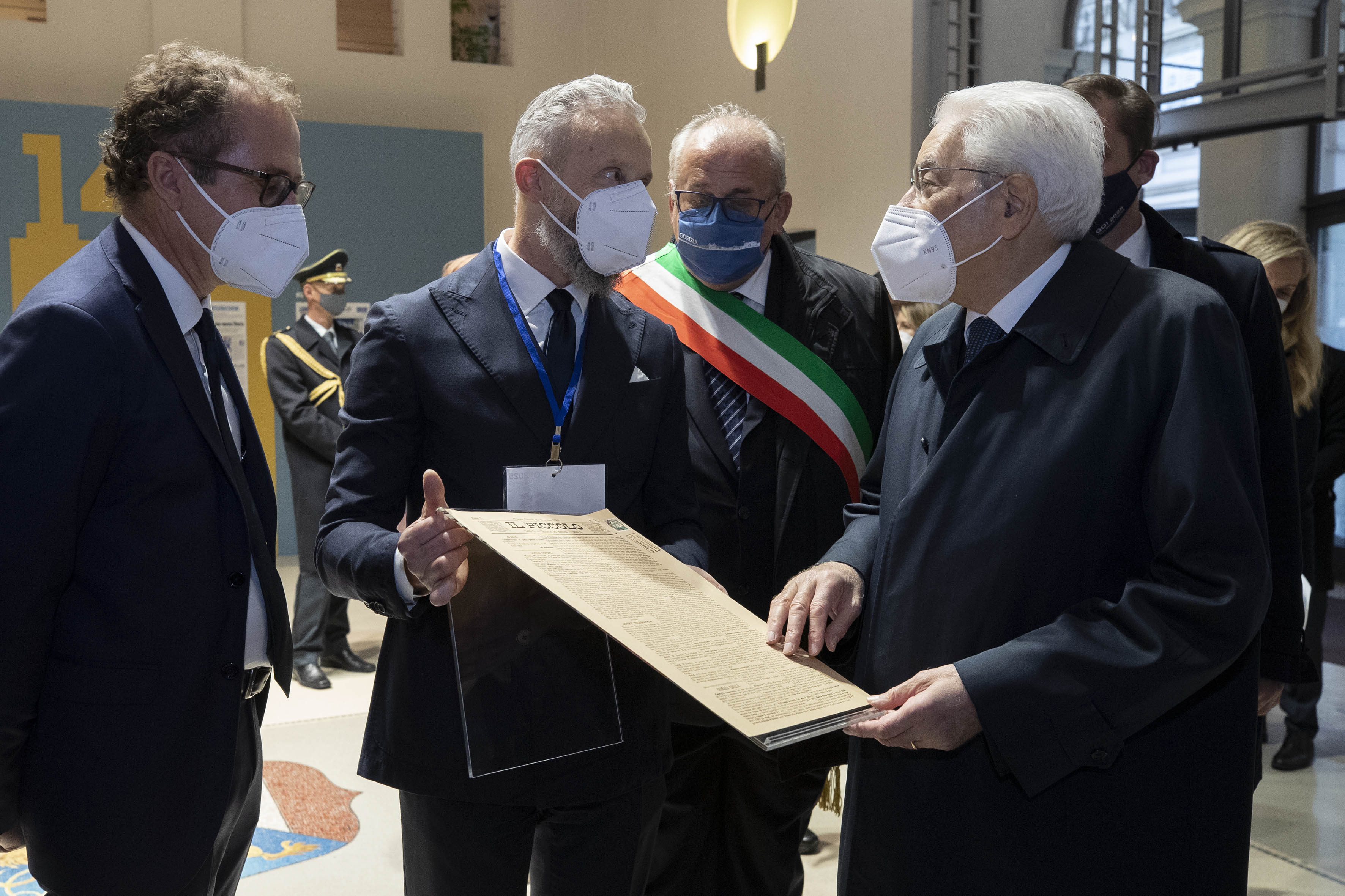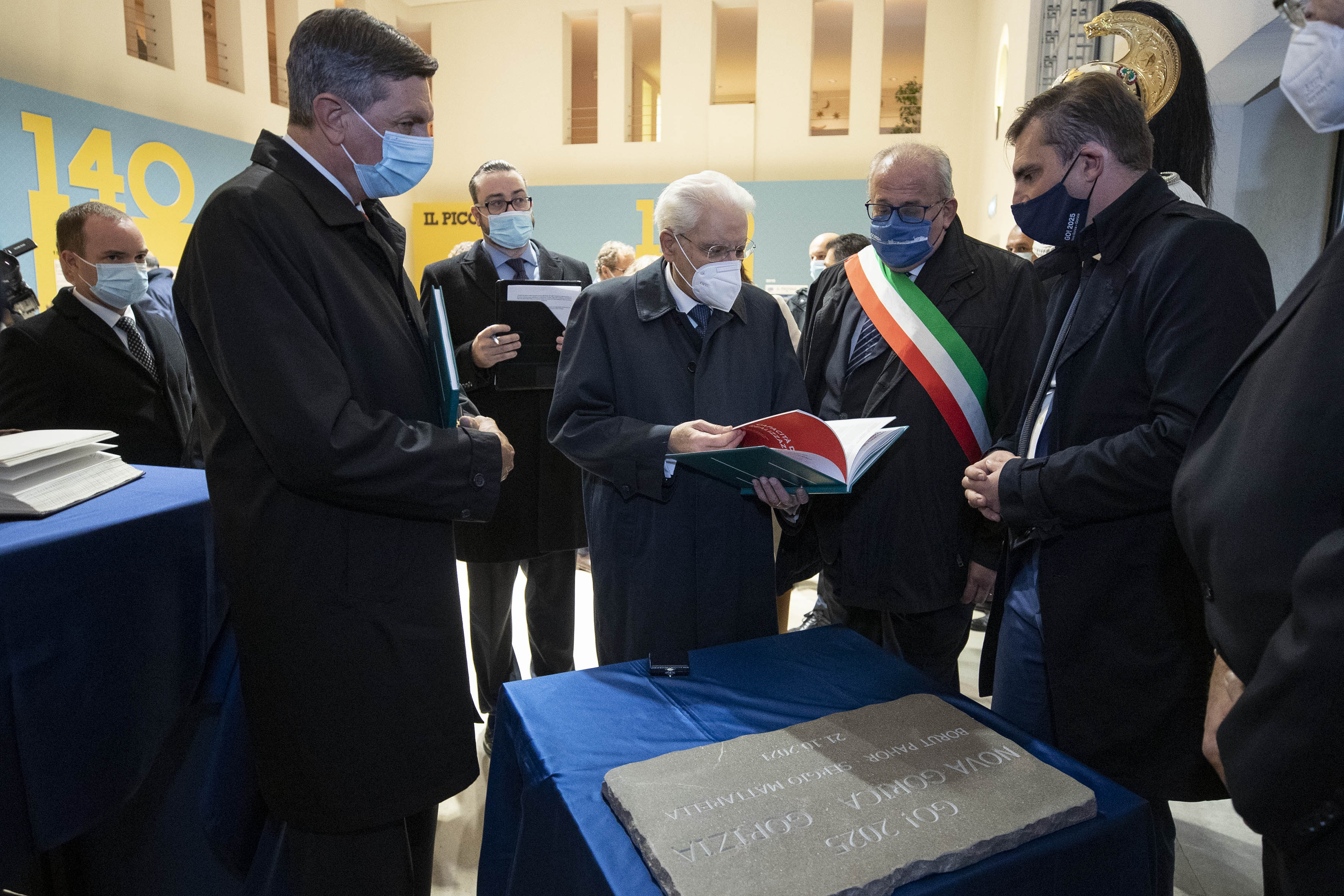 Il Presidente della Repubblica,Sergio Mattarella con Borut Pahor Presidente della Repubblica di Slovenia, al Teatro Verdi di Gorizia, visitano la Mostra per il 140° anniversario della fondazione del quotidiano Il Piccolo