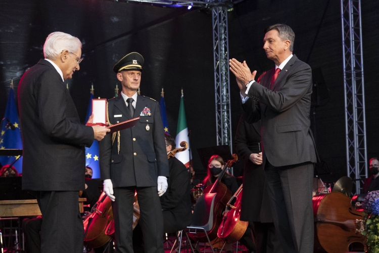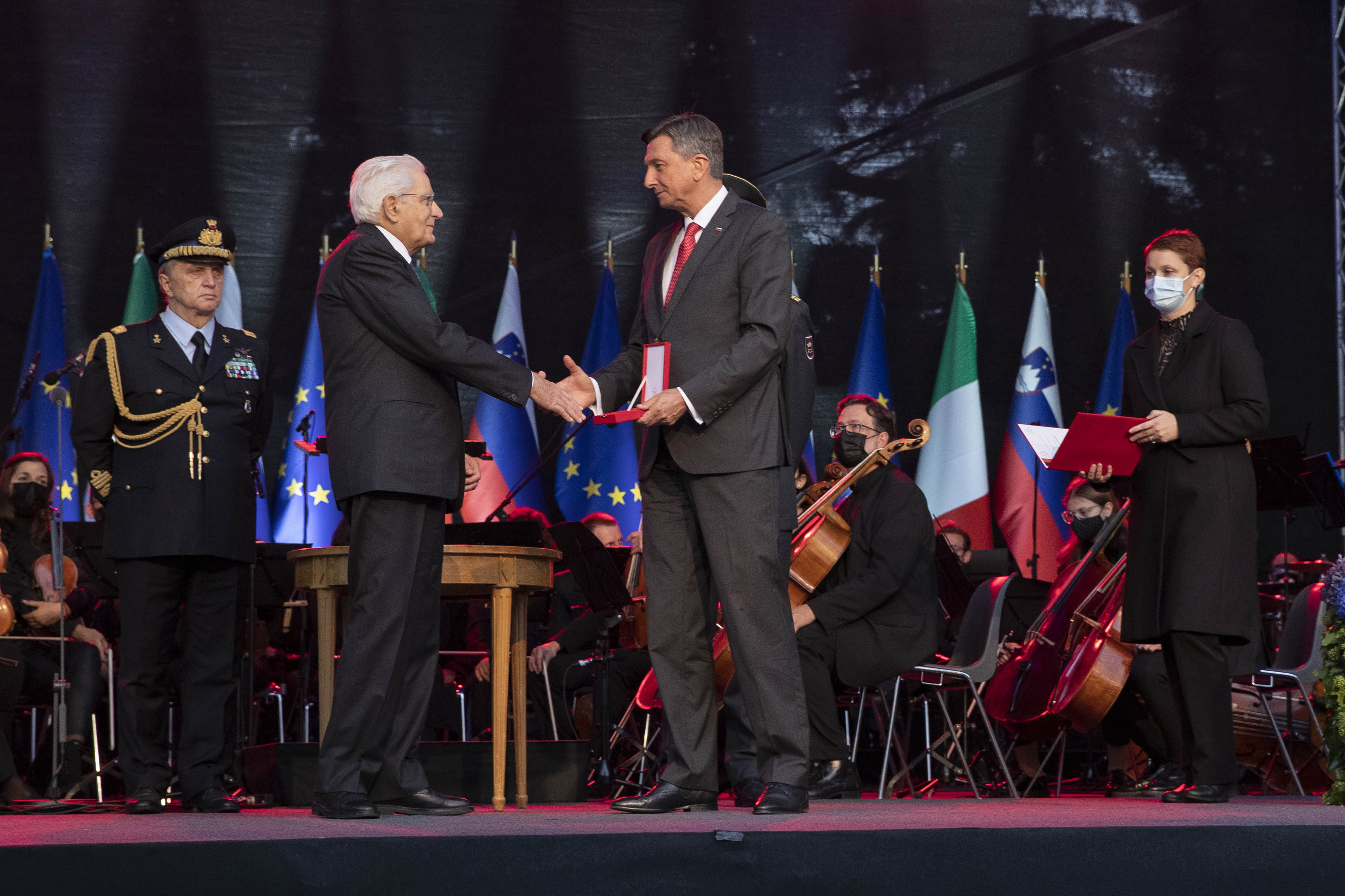 Il Presidente della Repubblica, Sergio Mattarella, riceve la massima onorificenza slovena da parte del Presidente della Repubblica di Slovenia, Borut Pahor, durante la Cerimonia di celebrazione della designazione congiunta di Nova Gorica e Gorizia quali Capitale Europea della Cultura 2025