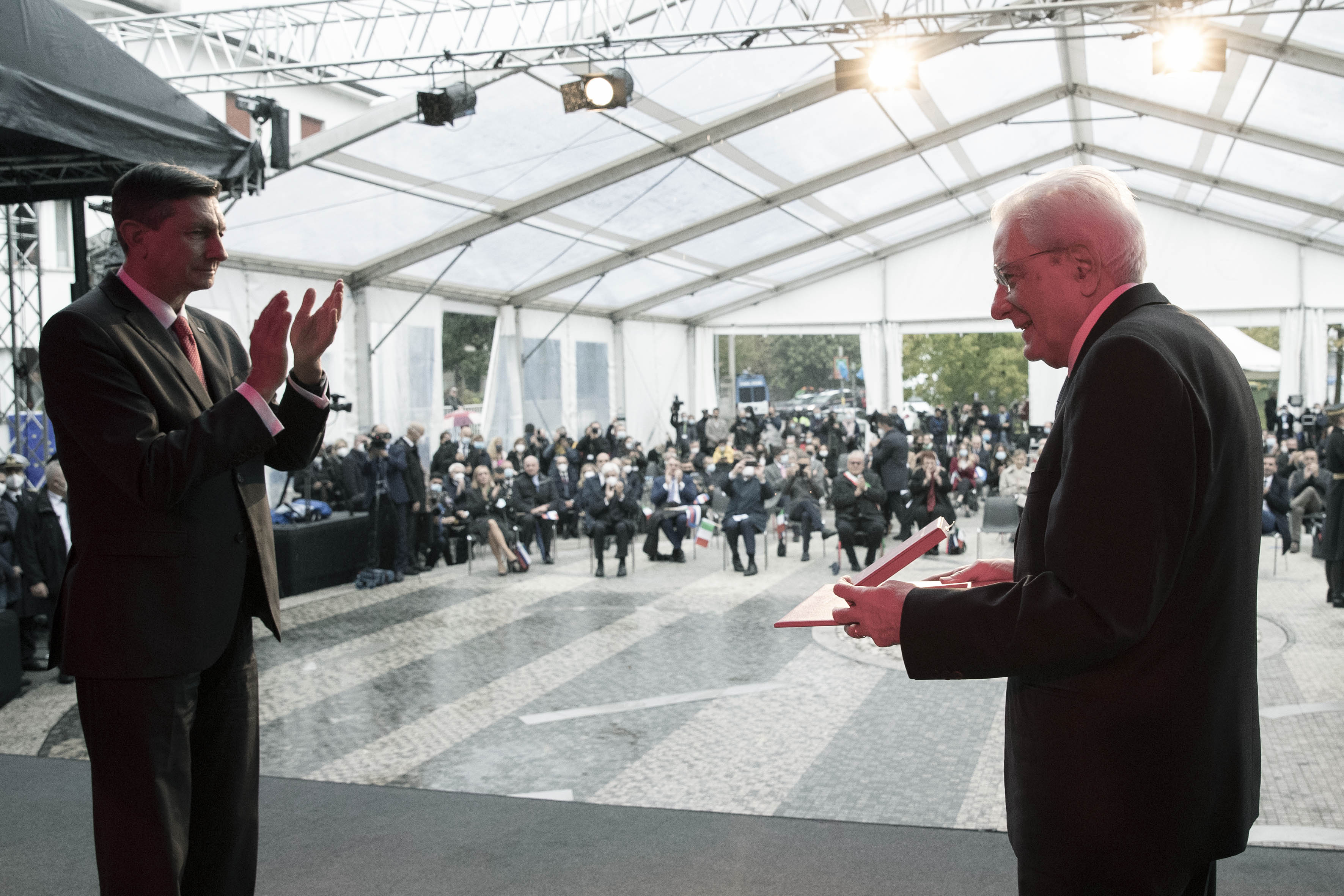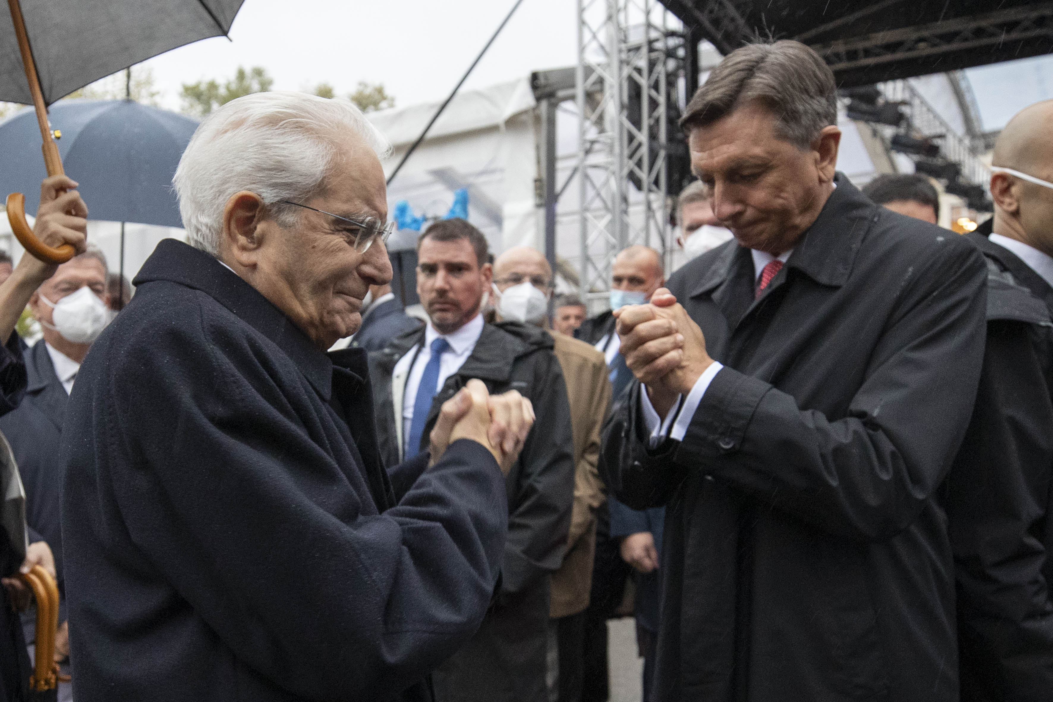 Il Presidente della Repubblica, Sergio Mattarella, con Borut Pahor Presidente della Repubblica di Slovenia, al termine della Cerimonia di celebrazione della designazione congiunta di Nova Gorica e Gorizia quali Capitale Europea della Cultura 2025