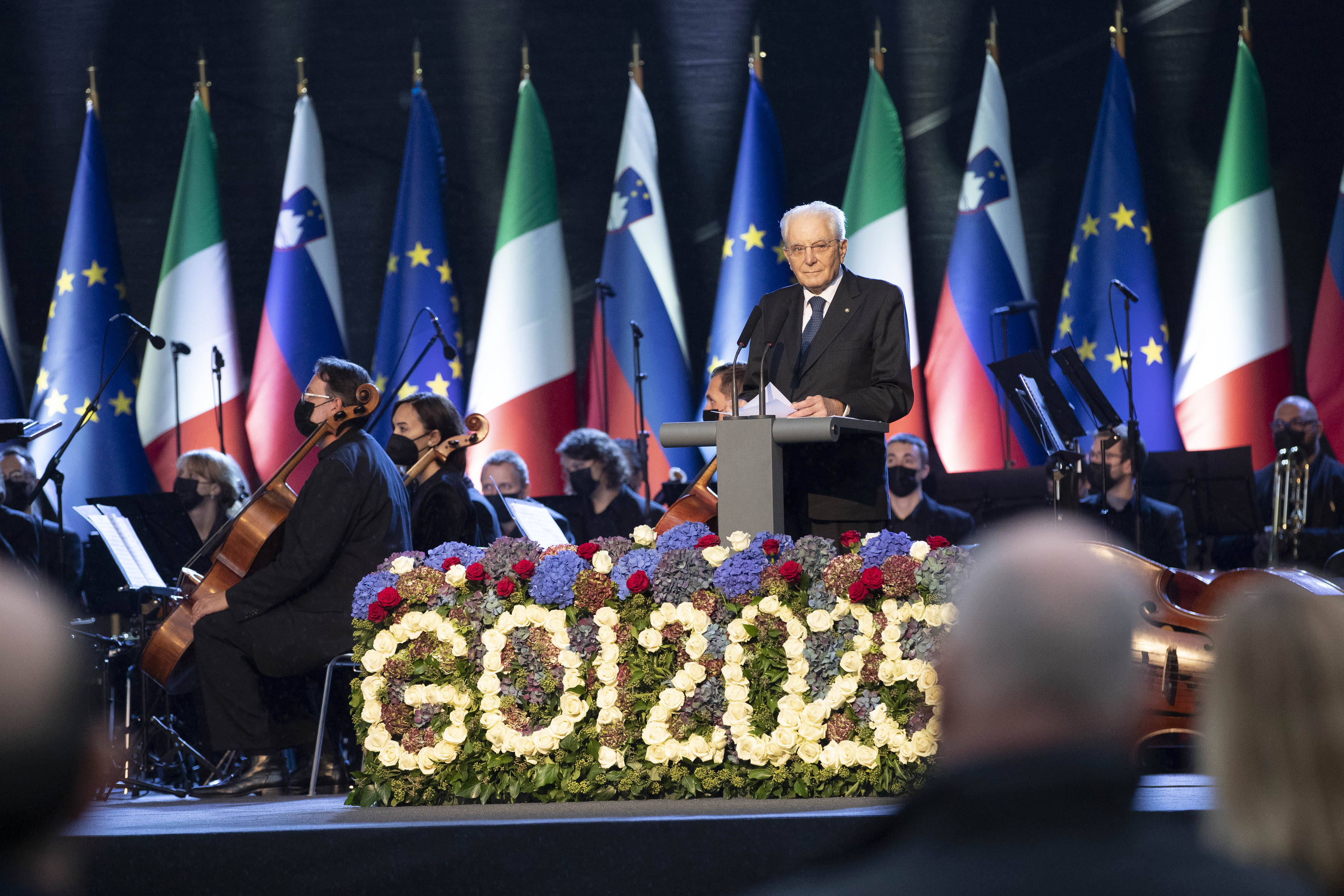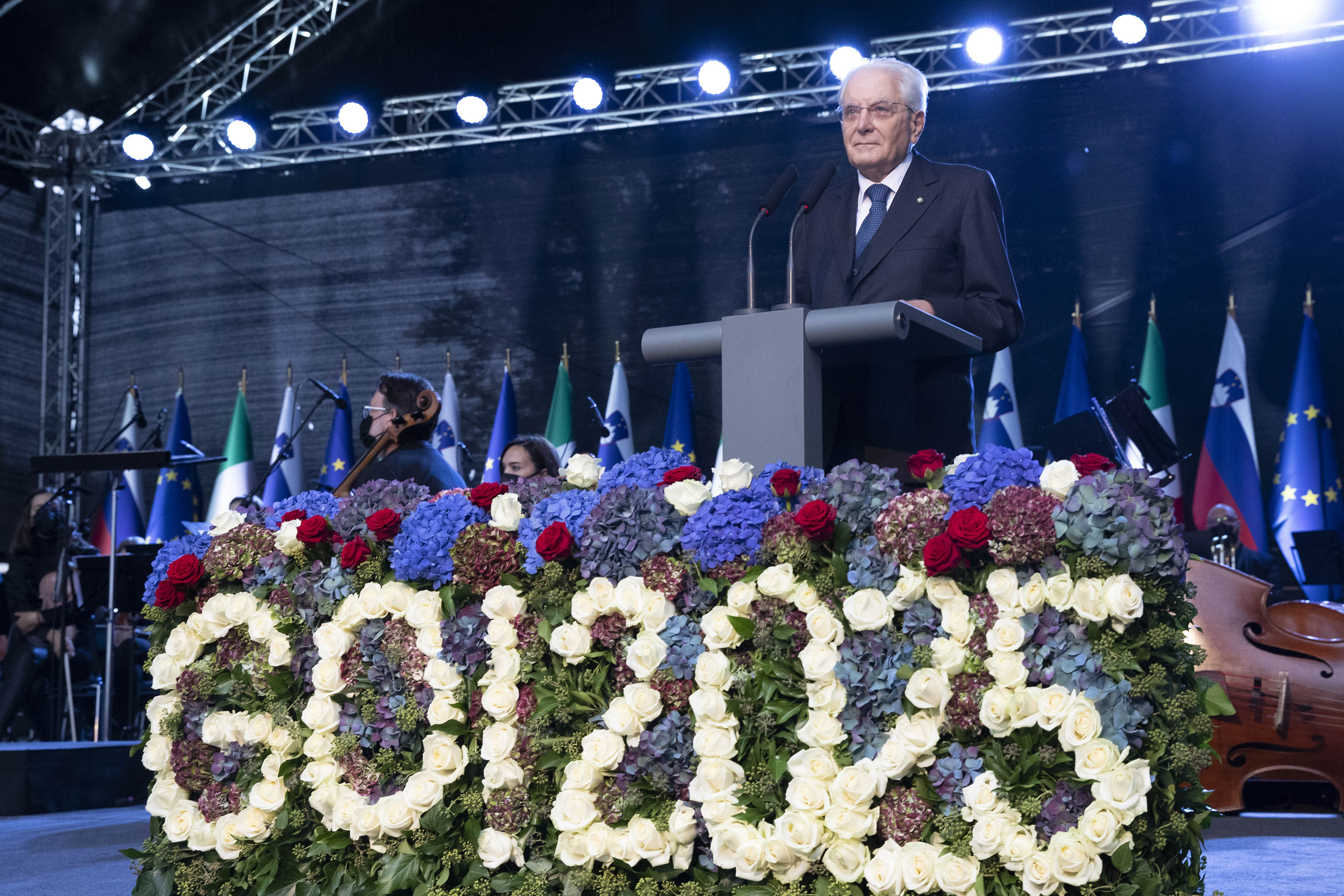 Il Presidente della Repubblica Sergio Mattarella durante il suo intervento alla Cerimonia di celebrazione della designazione congiunta di Nova Gorica e Gorizia quali Capitale Europea della Cultura 2025
