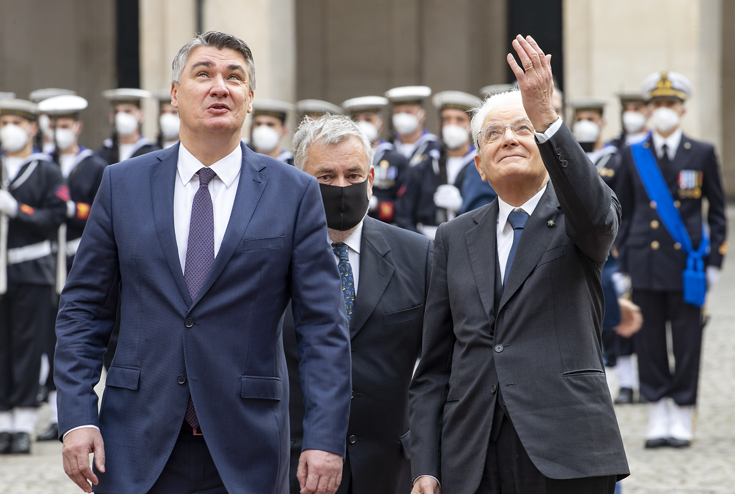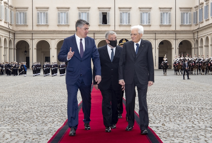 Il Presidente Sergio Mattarella e il Presidente della Repubblica di Croazia Zoran Milanović, ricevono gli onori militari