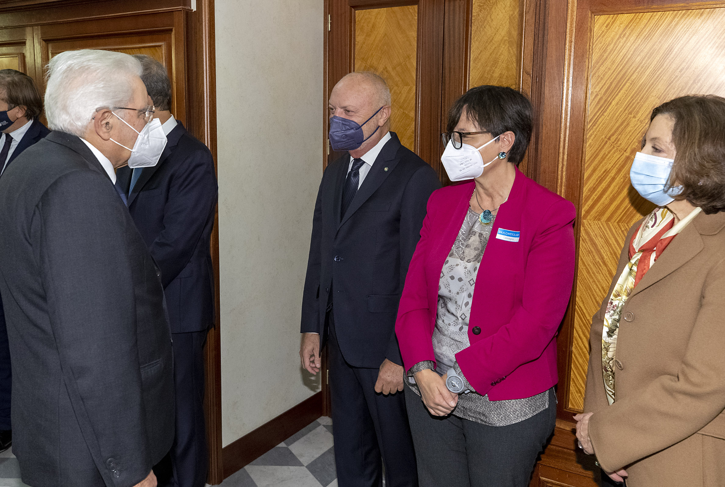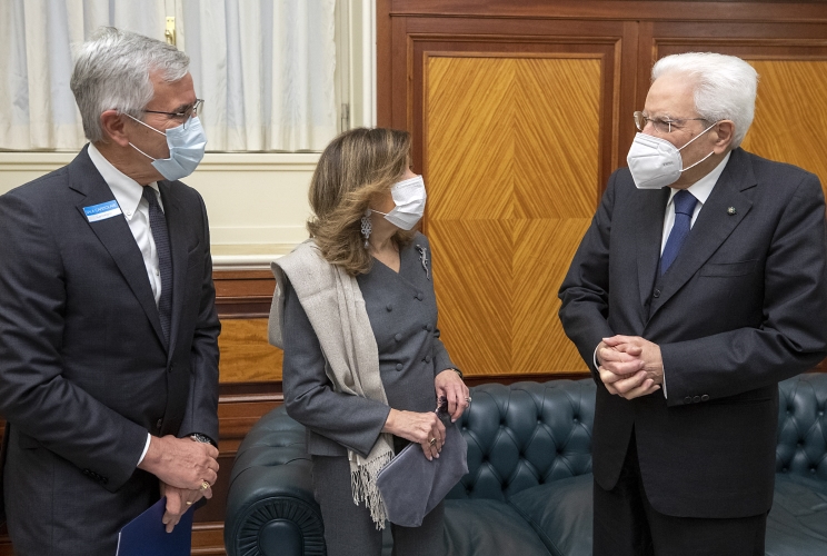 Il Presidente Sergio Mattarella con Paolo Aquilanti, Presidente della Fondazione Ri.MED, Maria Chiara Carrozza, Presidente del CNR e Leslie Davis, Presidente UPMC, University of Pittsburgh, in occasione della presentazione del Centro per le Biotecnologie e la Ricerca Biomedica in costruzione a Carini