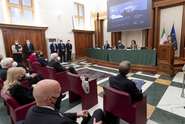 Il Presidente Sergio Mattarella con Maria Elisabetta Alberti Casellati, Presidente del Senato della Repubblica e Bruno Gridelli, Vice-Presidente Fondazione Ri.MED, in occasione della presentazione del Centro per le Biotecnologie e la Ricerca Biomedica in costruzione a Carini