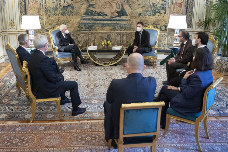 Il Presidente della Repubblica Sergio Mattarella con Emiliano Manfredonia, Presidente Nazionale delle ACLI - Associazioni Cristiane Lavoratori Italiani, e una delegazione dell'Associazione