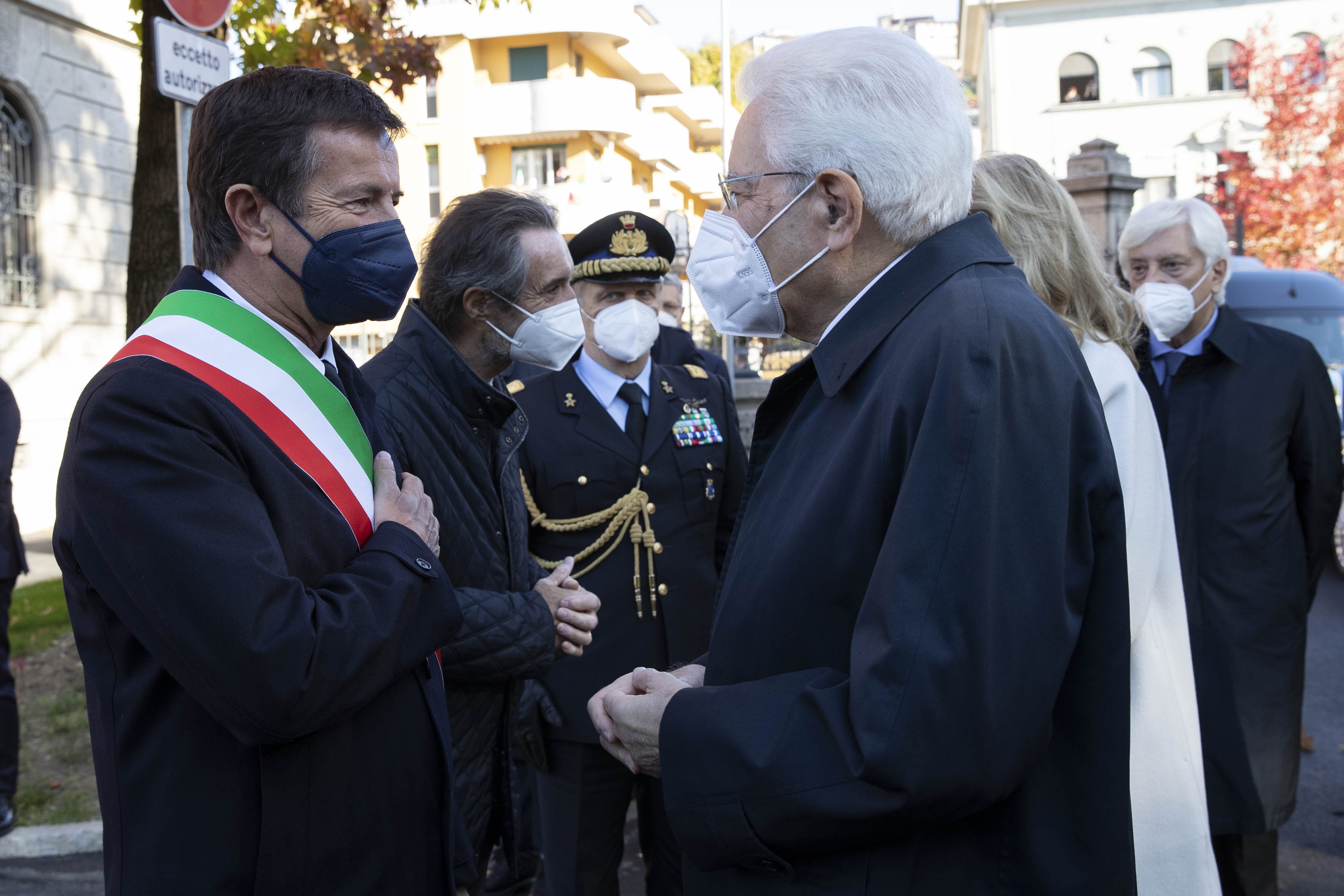 Il Presidente della Repubblica Sergio Mattarella accolto da Giorgio Gori, Sindaco di Bergamo,in occasione dell'inaugurazione della nuova sede dell’Accademia e all’apertura dell’anno di studi 2021/2022 della Guardia di Finanza