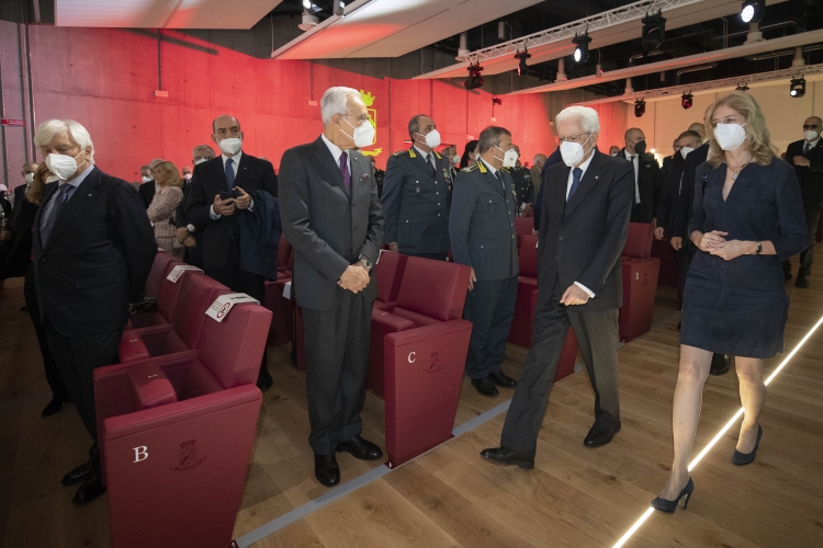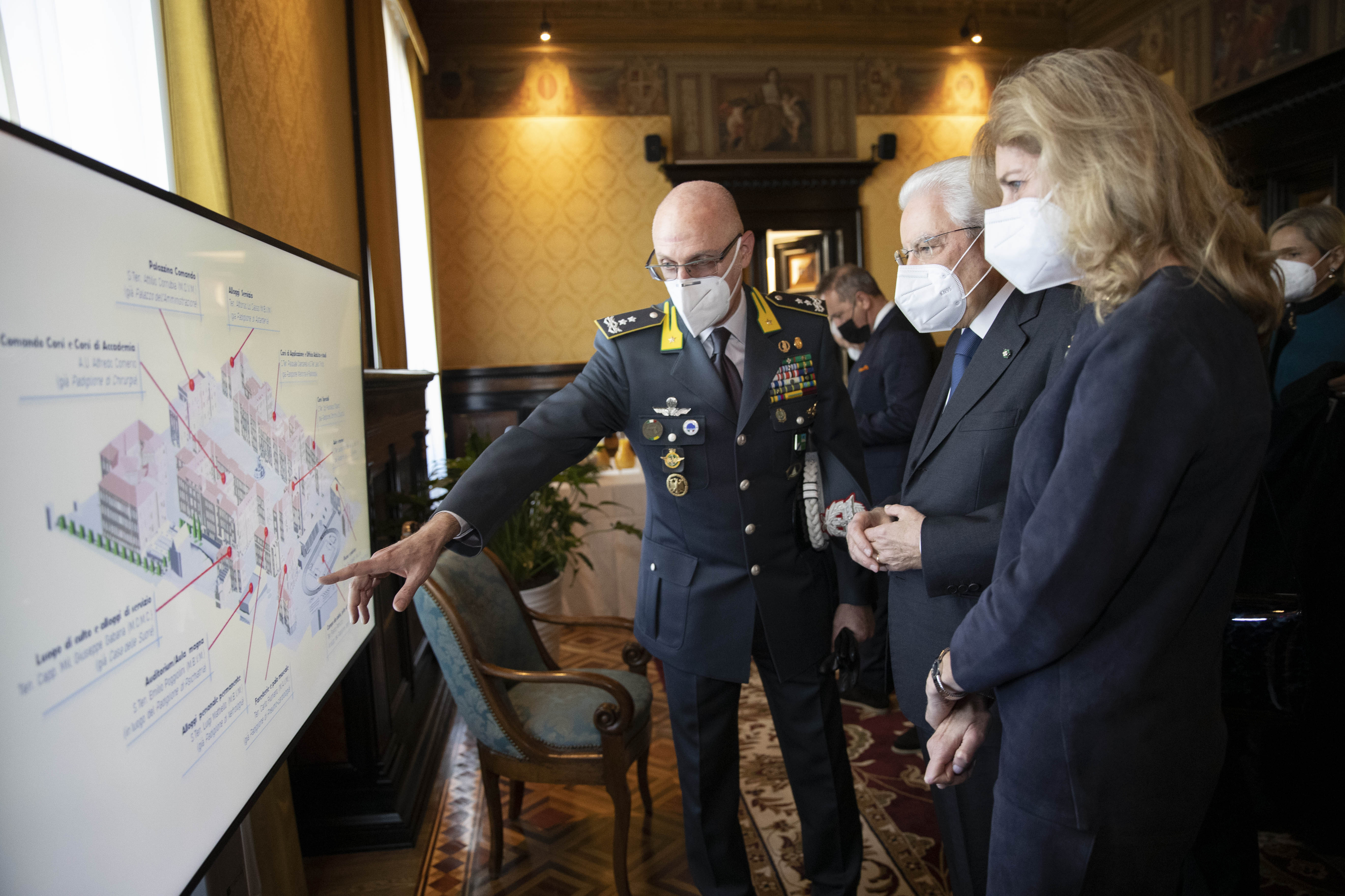 Il Presidente della Repubblica Sergio Mattarella nella nuova sede dell'Accademia della Guardia di Finanza,in occasione della cerimonia di inaugurazione