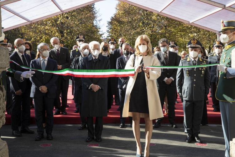 Il Presidente della Repubblica Sergio Mattarella e la Sig.ra Laura,madrina della cerimonia, nella nuova sede dell'Accademia della Guardia di Finanza,in occasione dell'inaugurazione