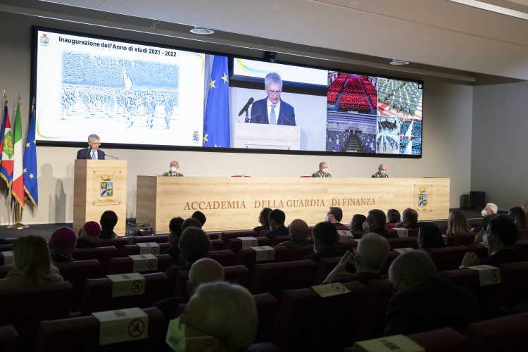 Il Presidente della Repubblica Sergio Mattarella, a Bergamo,in occasione della cerimonia di apertura dell’anno di studi 2021/2022 della Guardia di Finanza