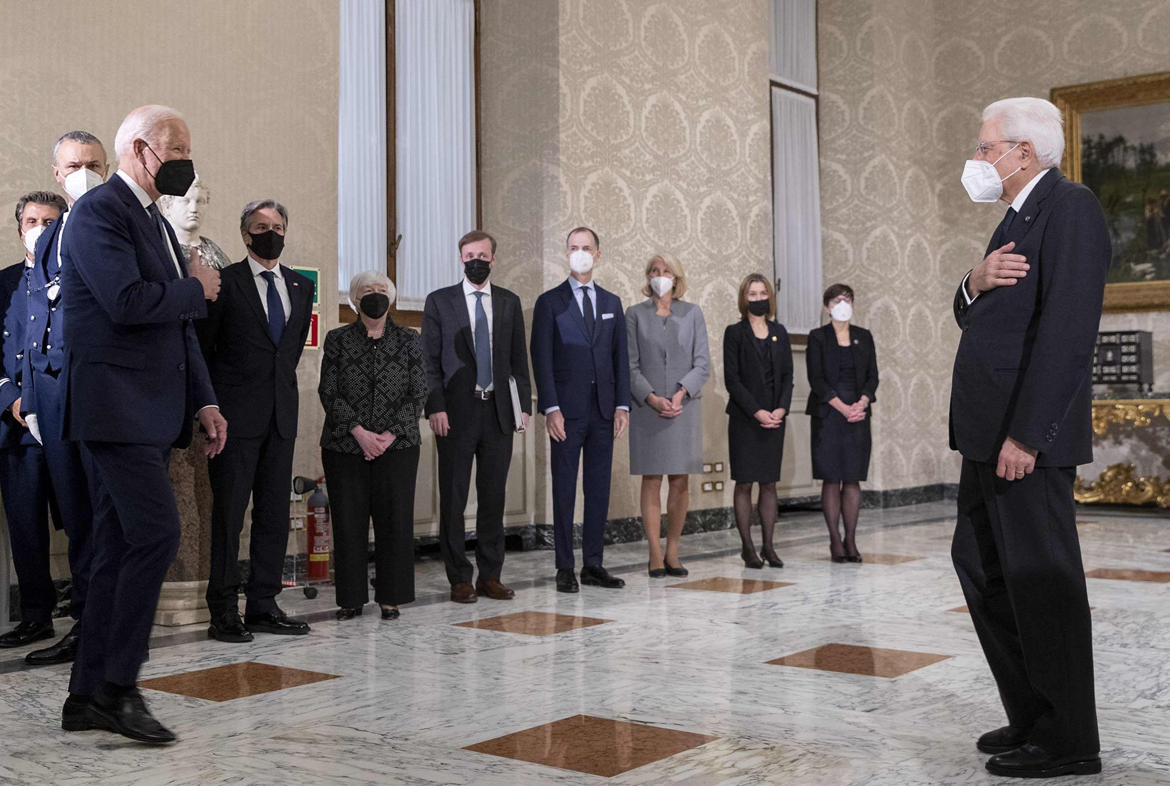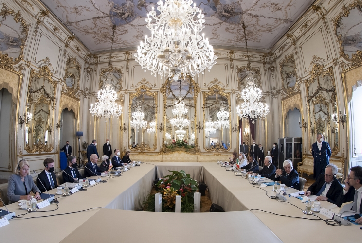 I Presidenti Mattarella e Biden in occasione dell’incontro con le delegazioni ufficiali