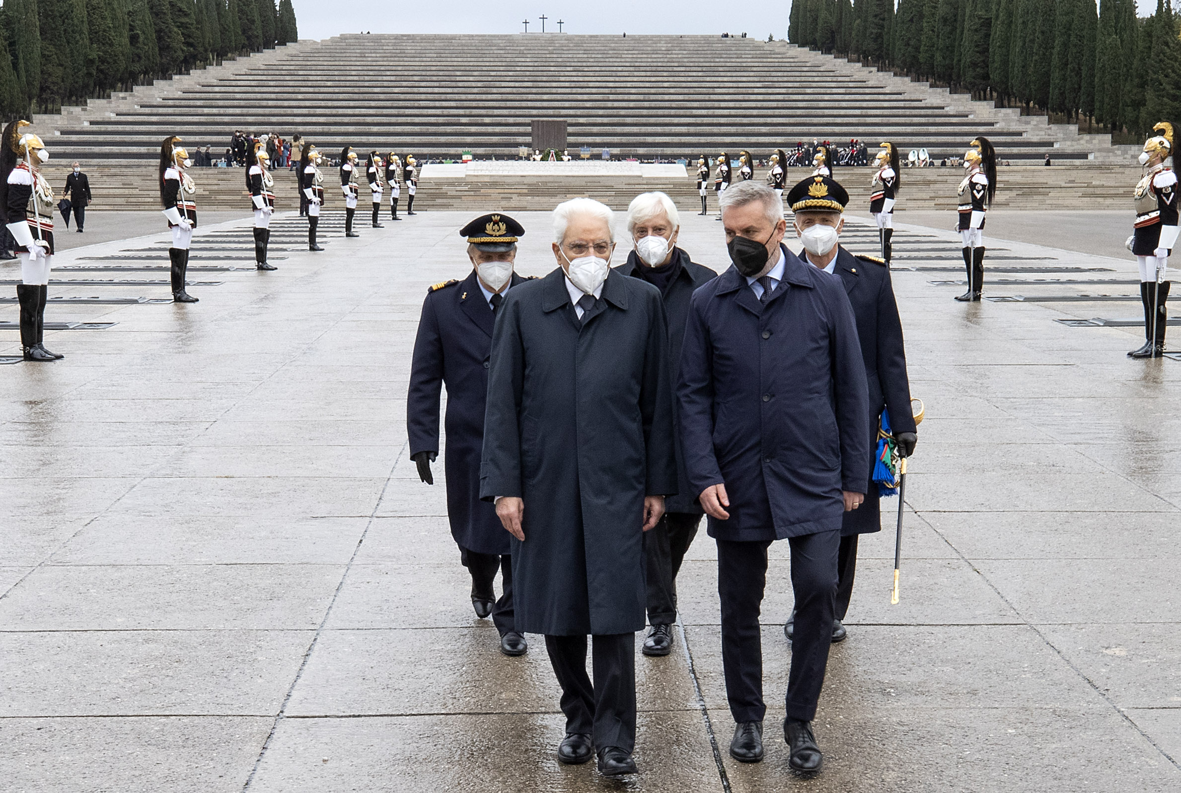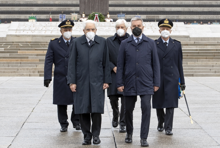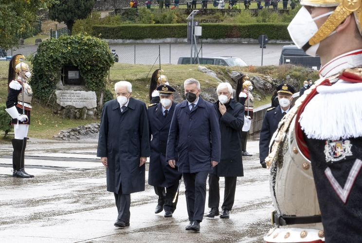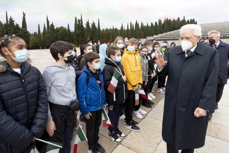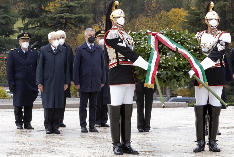 Il Presidente Sergio Mattarella nel corso della deposizione di una corona d’alloro al Sacrario Militare di Redipuglia in occasione del Giorno dell’Unità Nazionale e Giornata delle Forze Armate