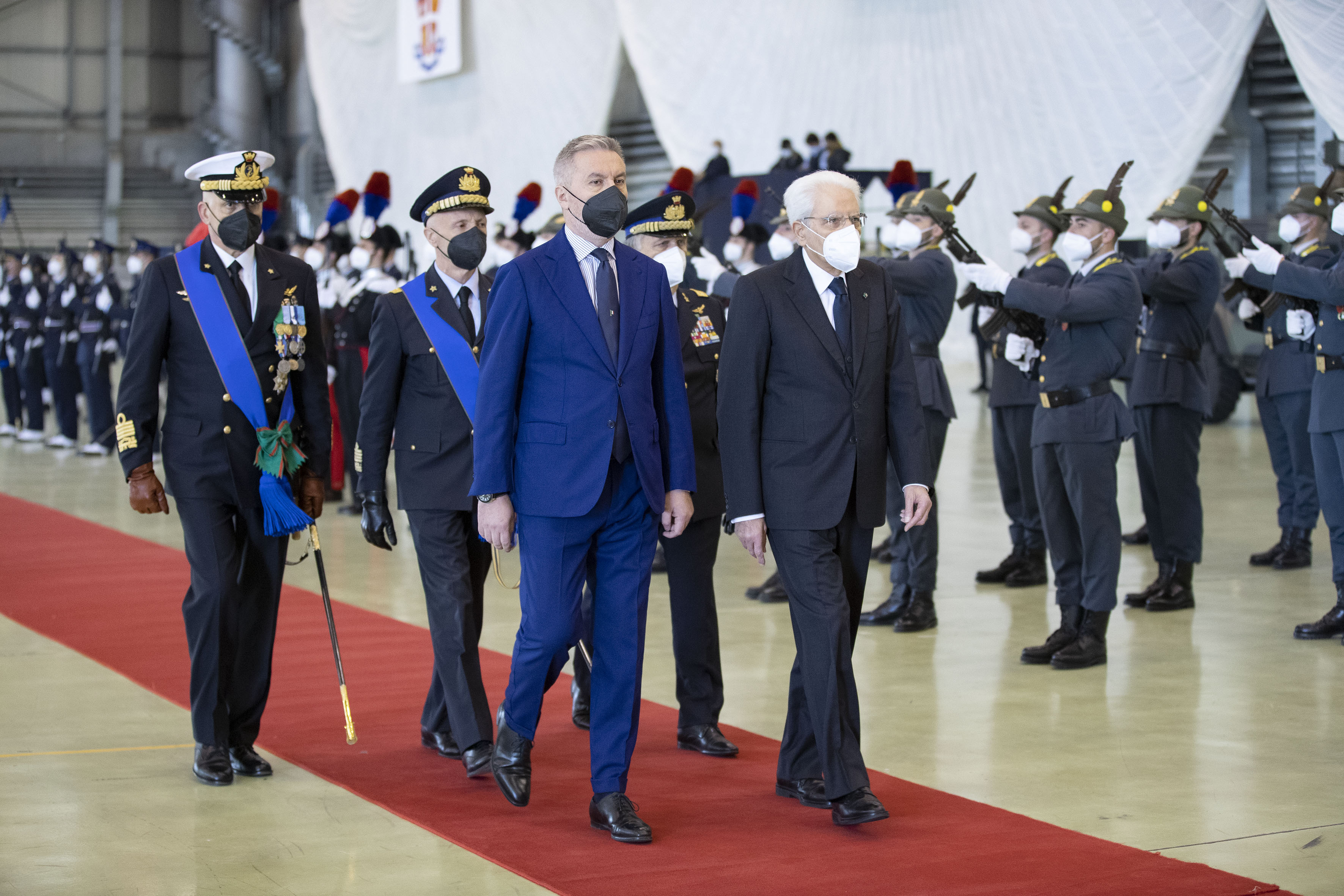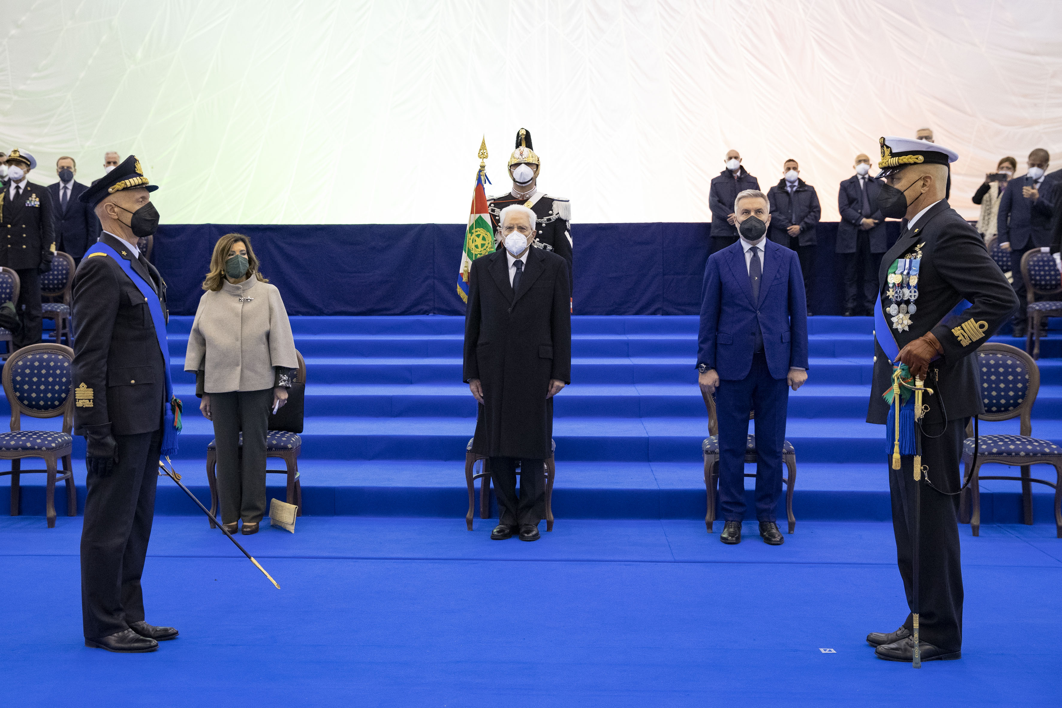 Il Presidente della Repubblica Sergio Mattarella con il Ministro della Difesa Lorenzo Guerini,e con Gen. S.A. Enzo Vecciarelli e Amm. Sq. Giuseppe Cavo Dragone,in occasione della cerimonia di avvicendamento del Capo di stato maggiore della difesa
