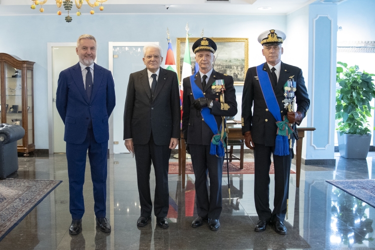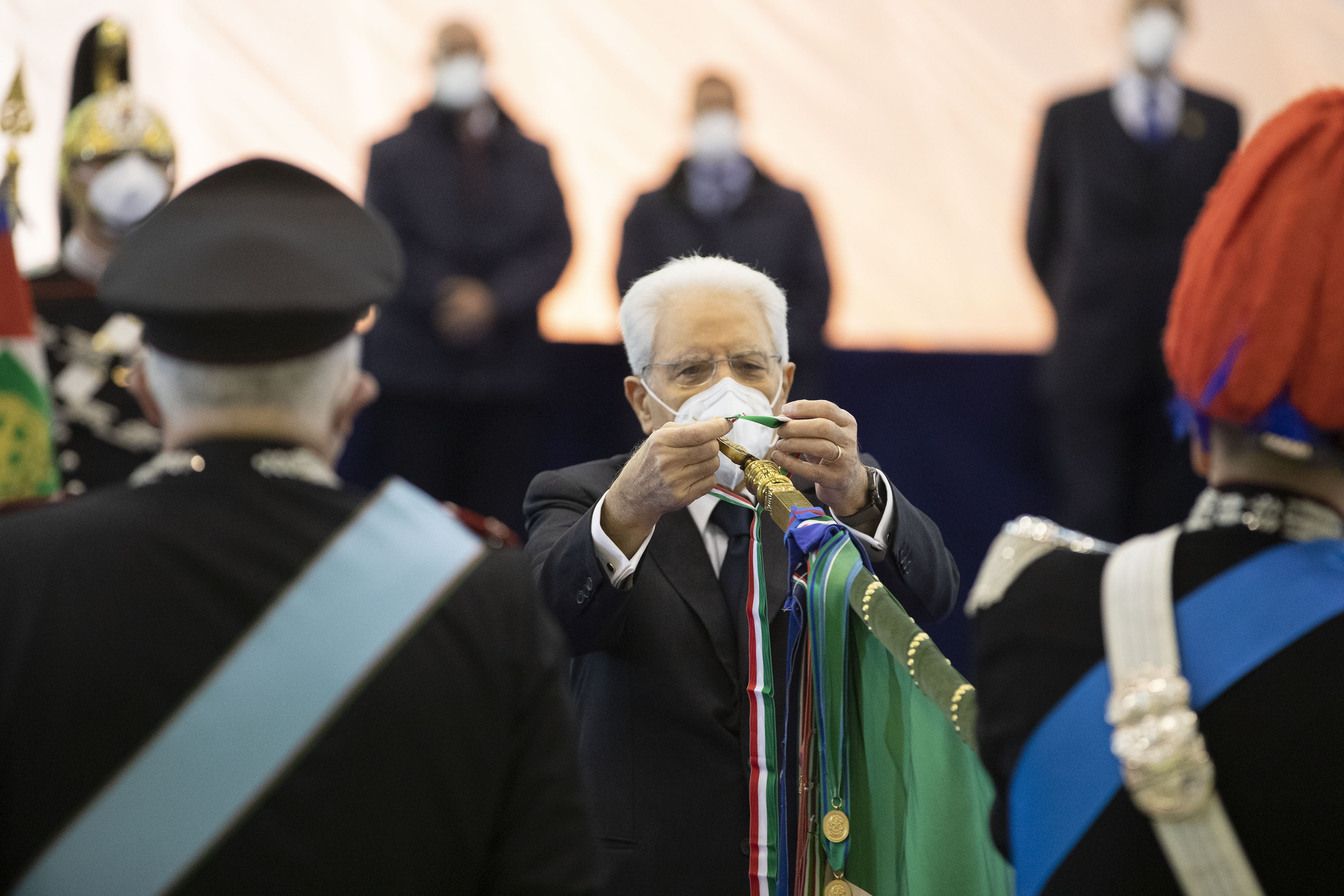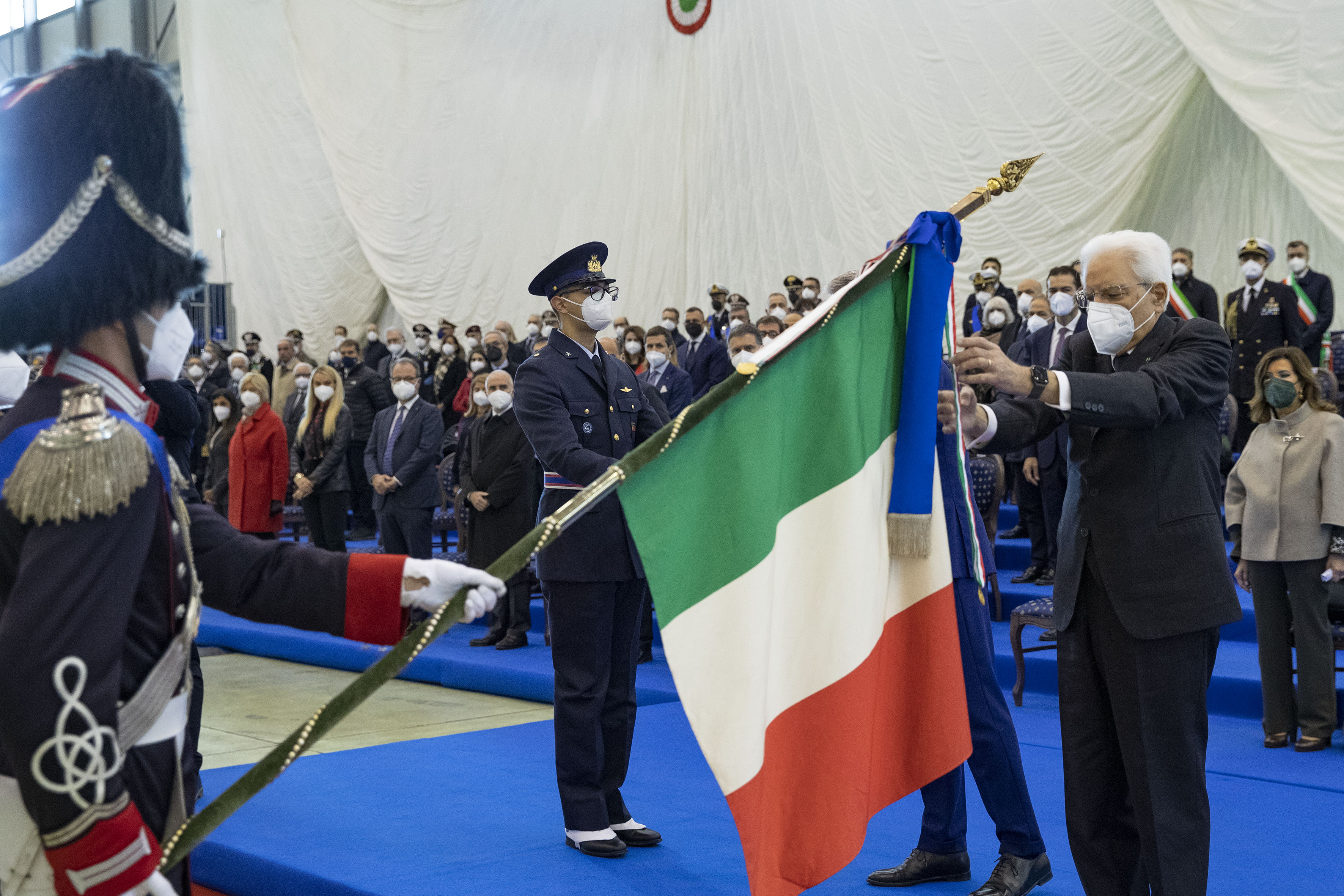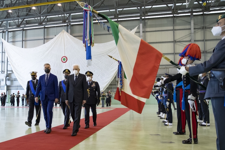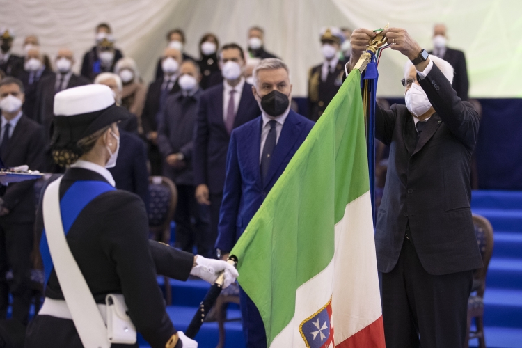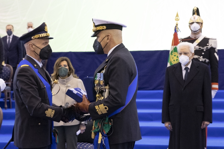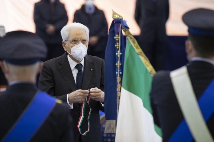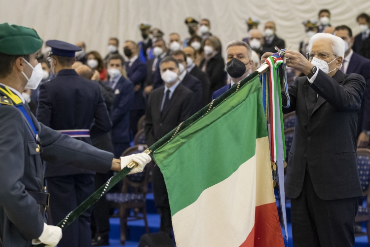 Il Presidente della Repubblica Sergio Mattarella consegna le medaglie d’oro al Valor Civile alle Bandiere di Guerra delle Forze Armate, dell’Arma dei Carabinieri e della medaglia d’oro al Valore della Guardia di Finanza alla Bandiera di Guerra del Corpo,in occasione della cerimonia di avvicendamento del Capo di stato maggiore della difesa