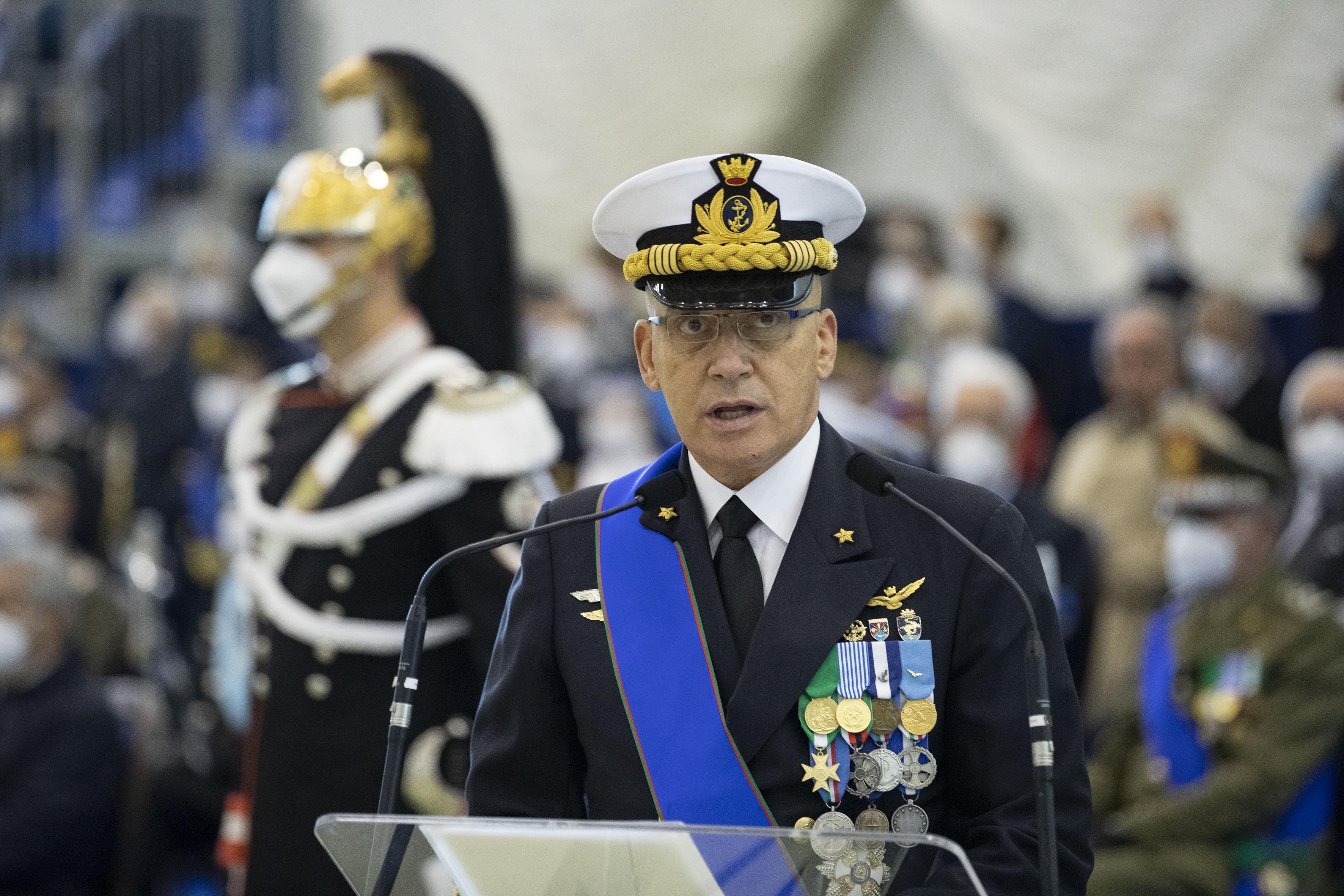 Il Presidente della Repubblica Sergio Mattarella durante l'ntervento dell'Amm. Giuseppe Cavo Dragone nuovo Capo di stato maggiore della difesa