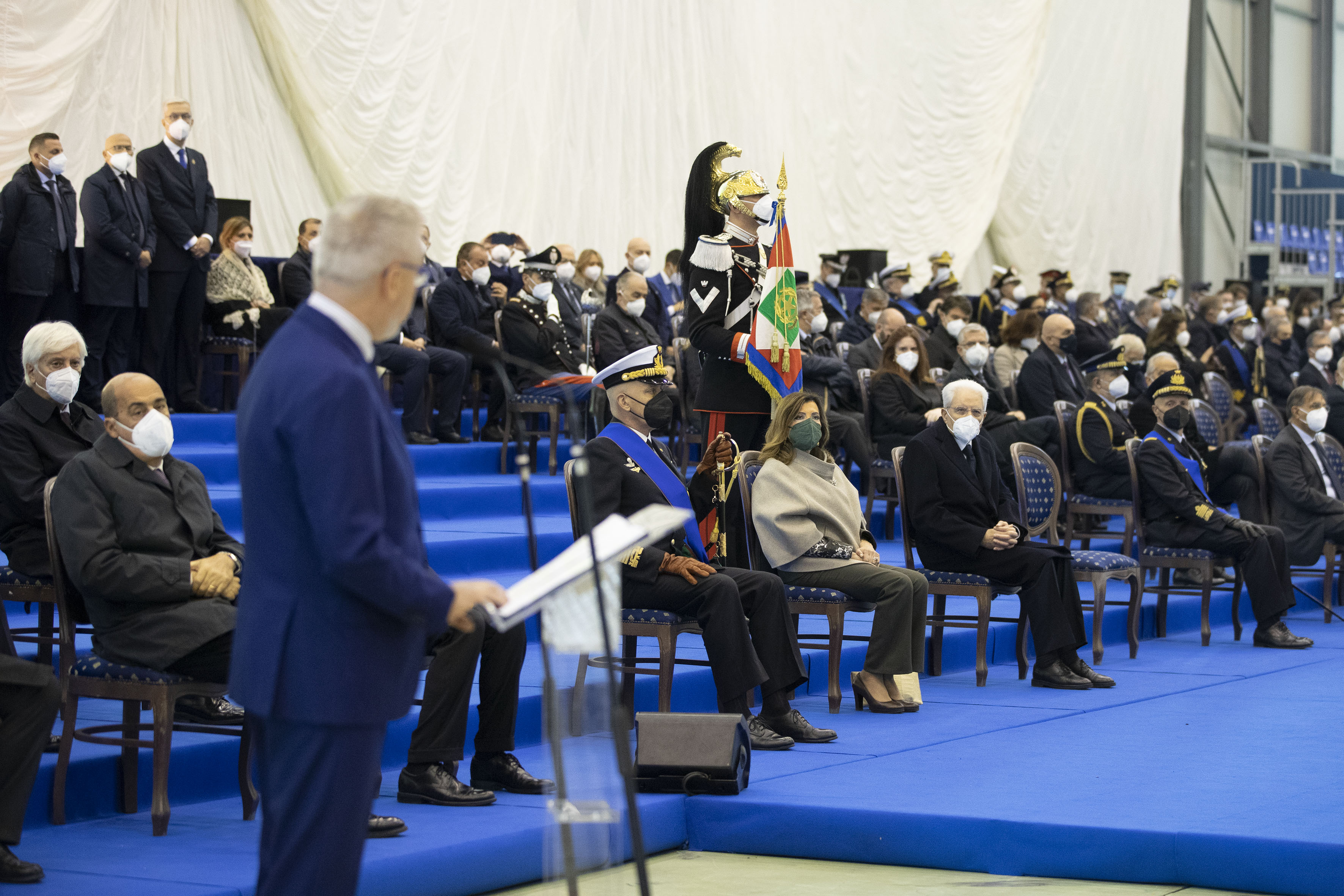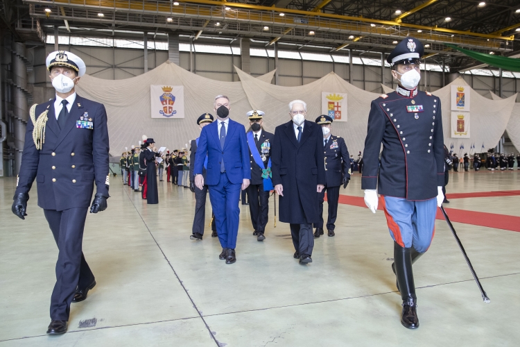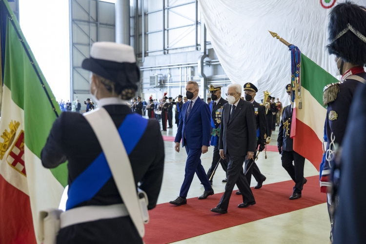 Il Presidente della Repubblica Sergio Mattarella durante l'intervento del Ministro della Difesa Lorenzo Guerini