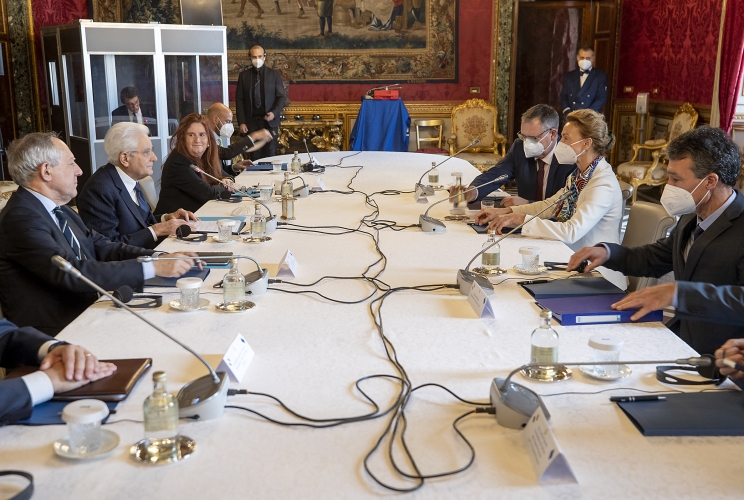 Il Presidente Sergio Mattarella durante i colloqui con la Segretaria generale del Consiglio d’Europa S.E. la Sig.ra Marija Pejčinović Burić