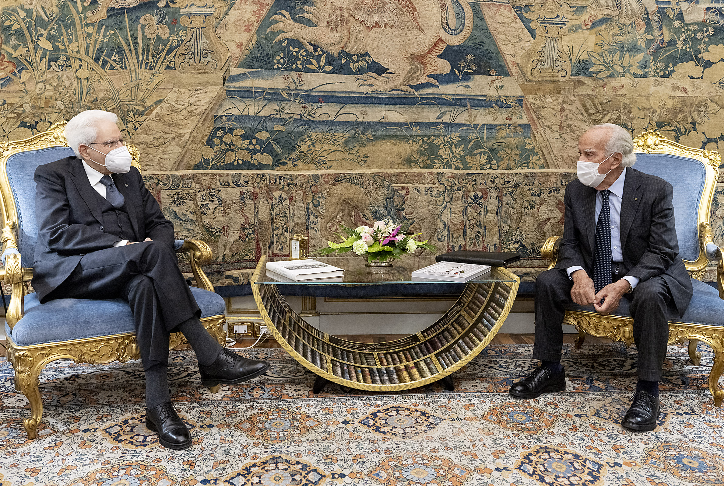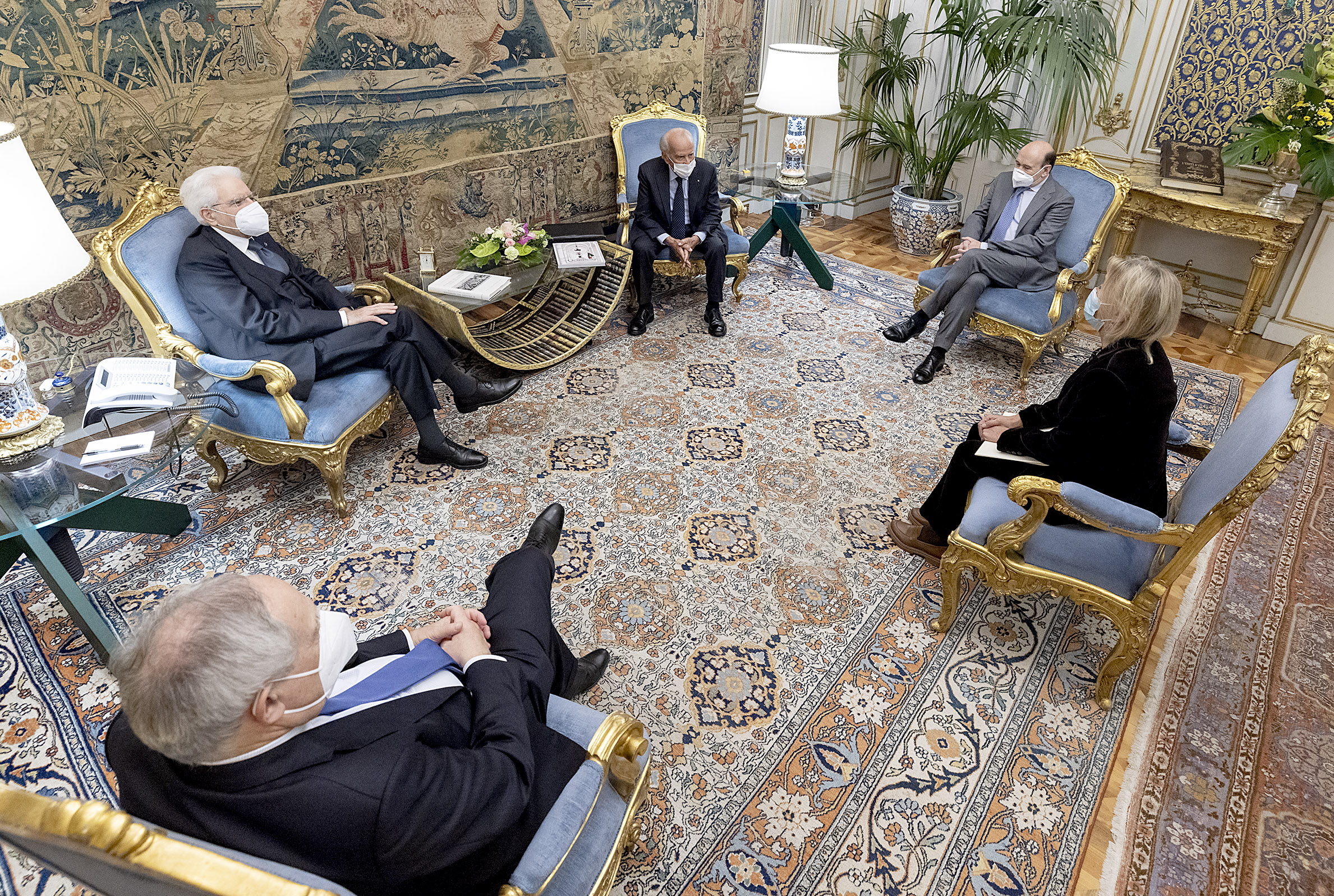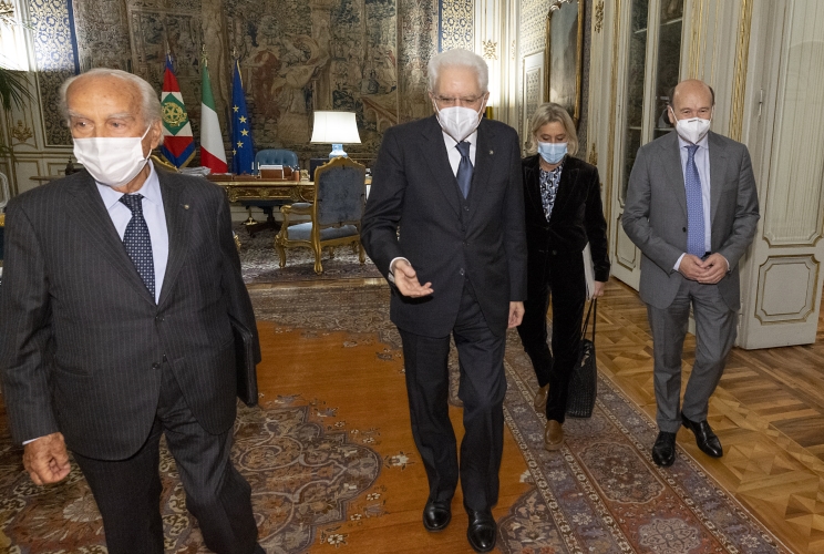 Il Presidente Sergio Mattarella con Dominique Robert Antoine Meyer, Sovrintendente Teatro alla Scala, unitamente al Cav. Lav Giuseppe Vita, Presidente Accademia del Teatro alla Scala e a Luisa Vinci, Direttrice generale Accademia del Teatro alla Scala
