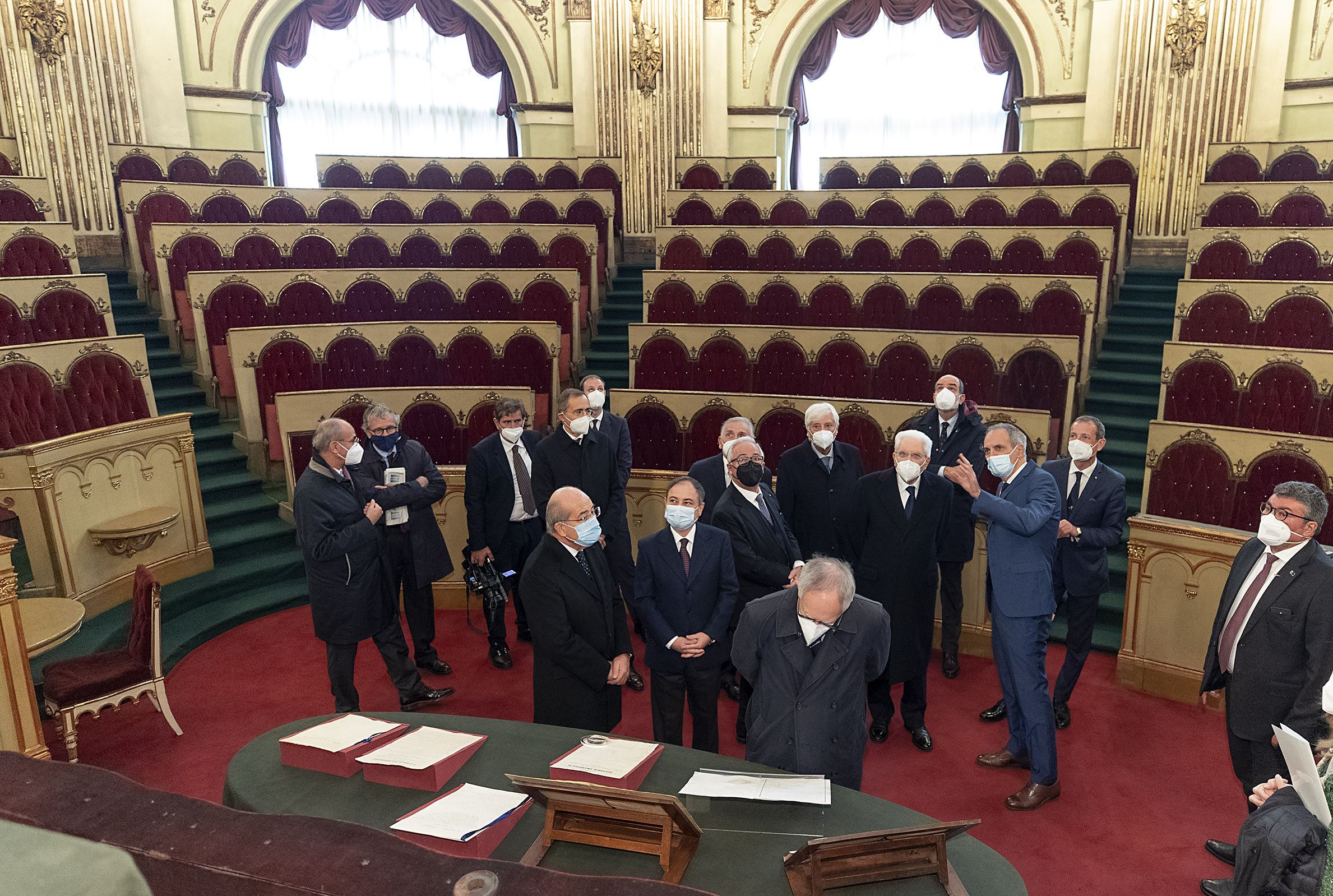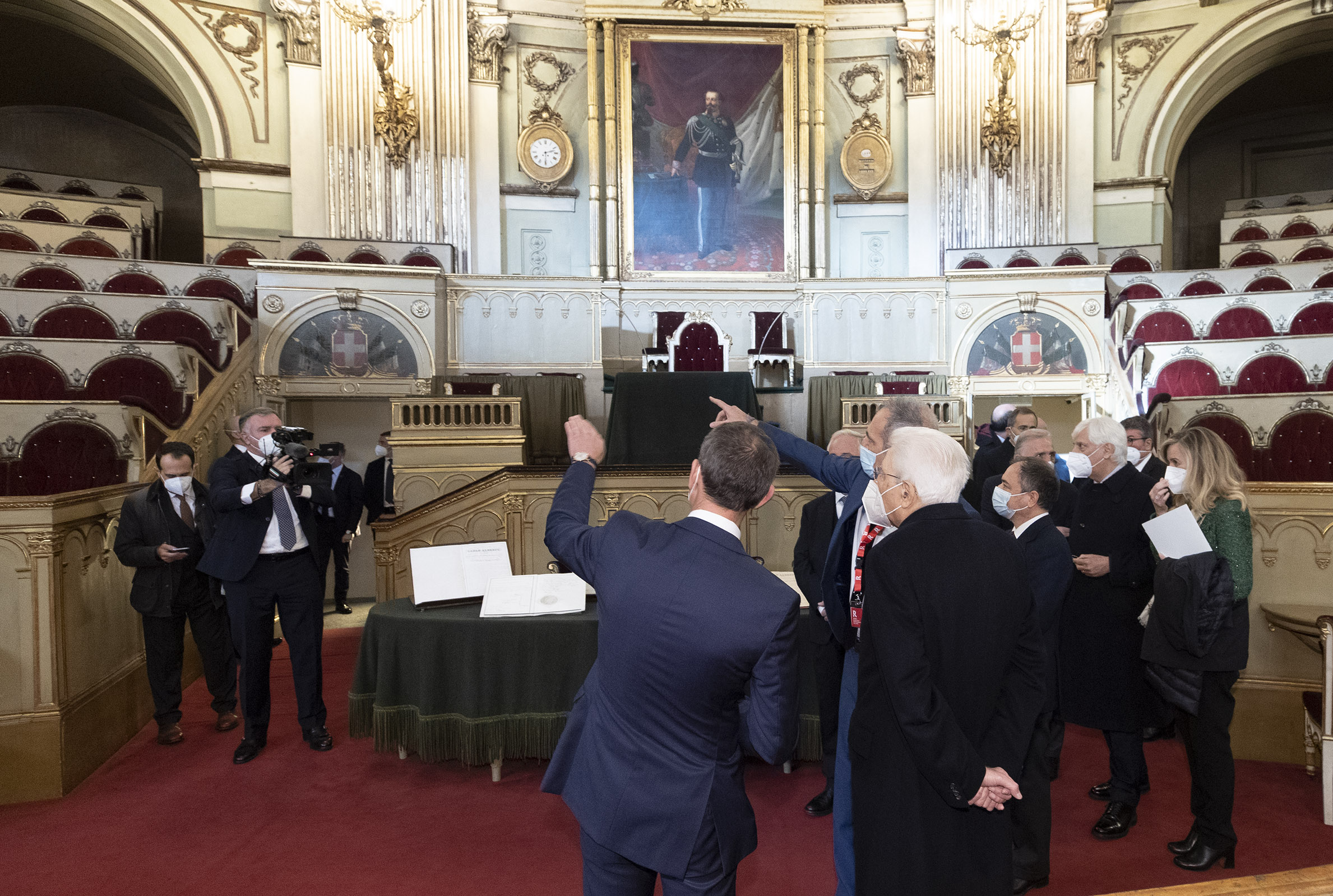 Il Presidente Mattarella visita l'Aula della Camera dei Deputati del Parlamento Subalpino