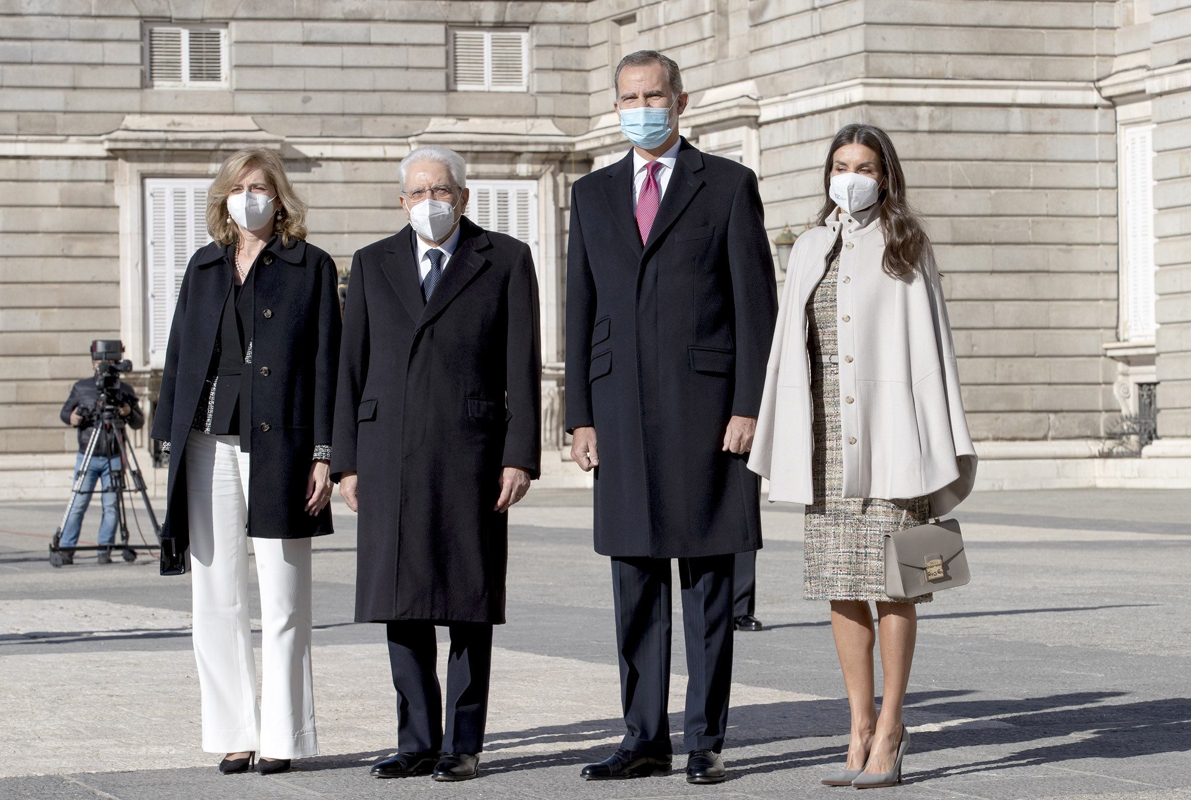 Madrid - Il Presidente della Repubblica Sergio Mattarella con le Loro Maestà il Re di Spagna Filippo VI e la Regina Letizia