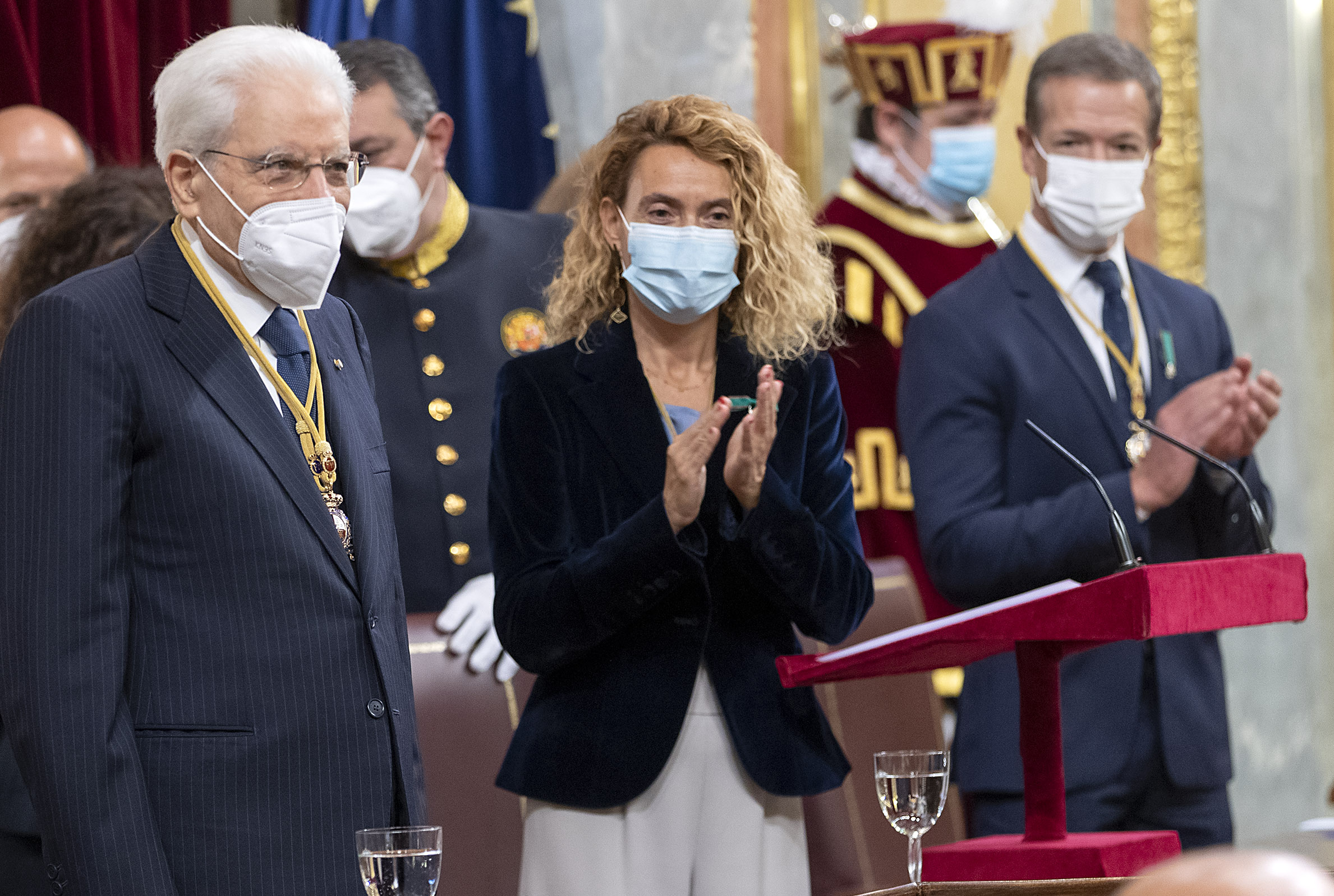 Il Presidente della Repubblica Sergio Mattarella con la Presidente del Congresso dei Deputati Meritxell Batet e il Presidente del Senato Ander Gil Garcia