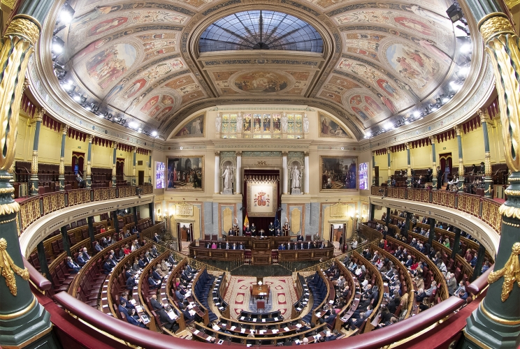 Il Presidente della Repubblica Sergio Mattarella al termine della prolusione ai membri delle Cortes