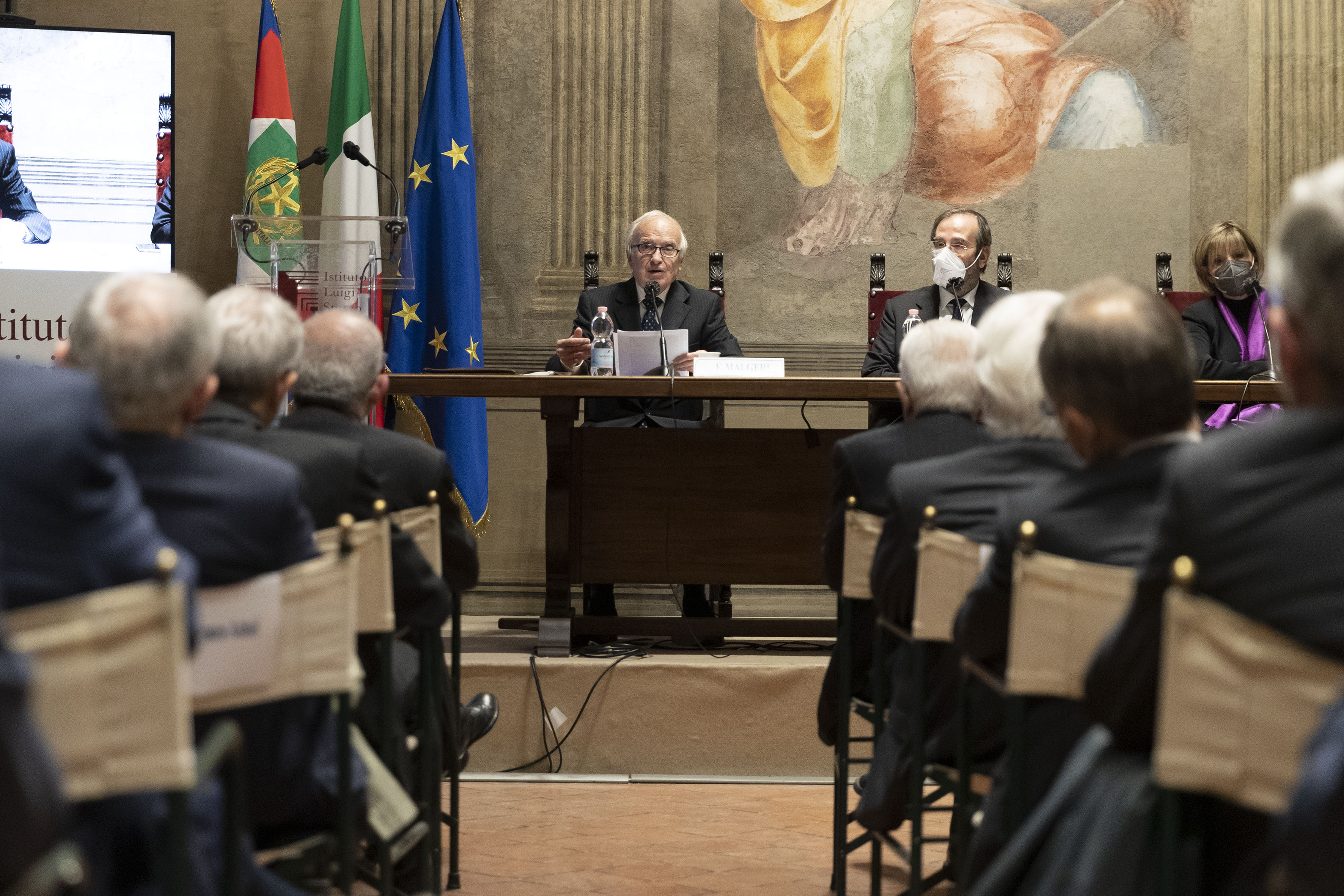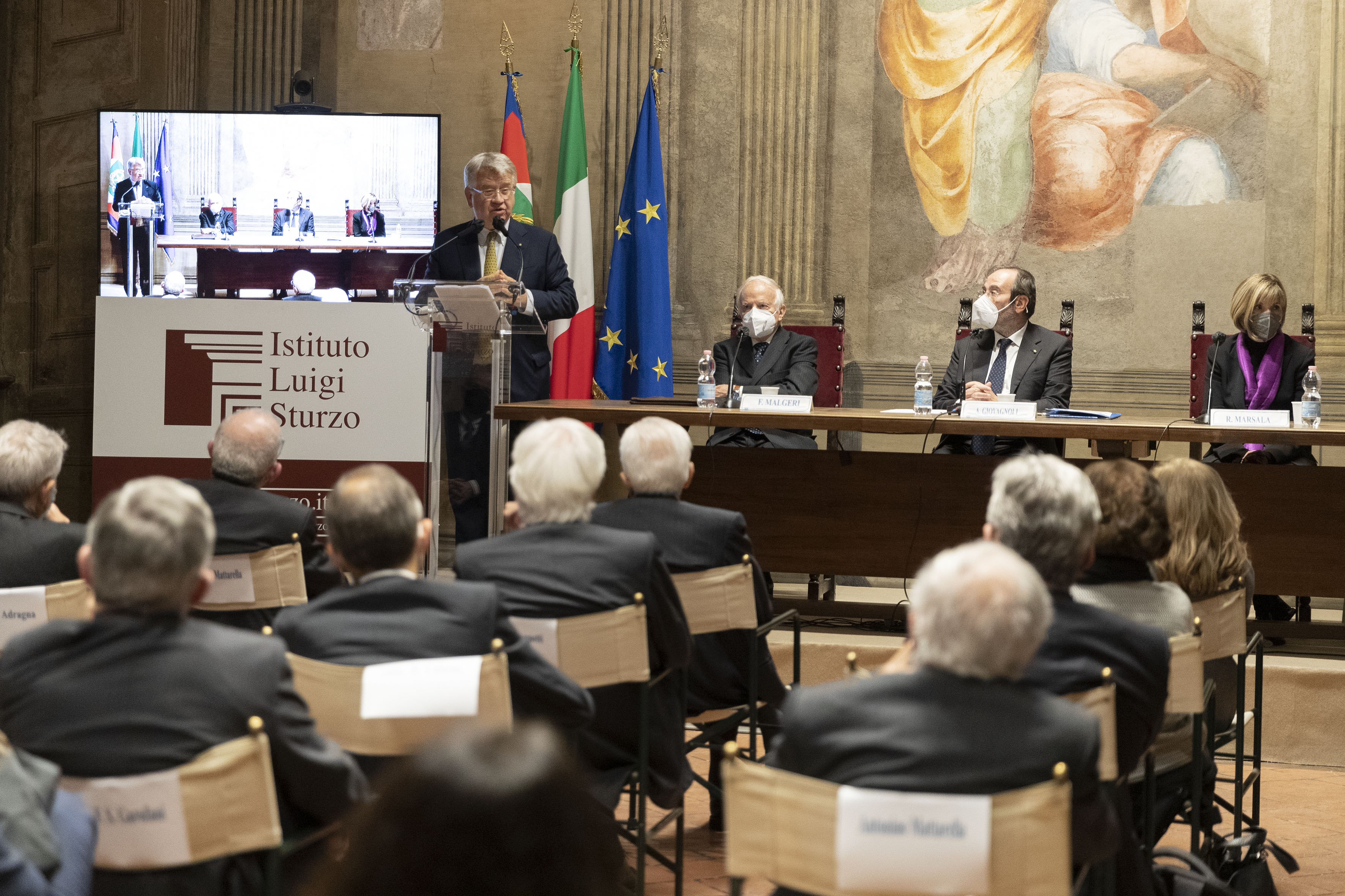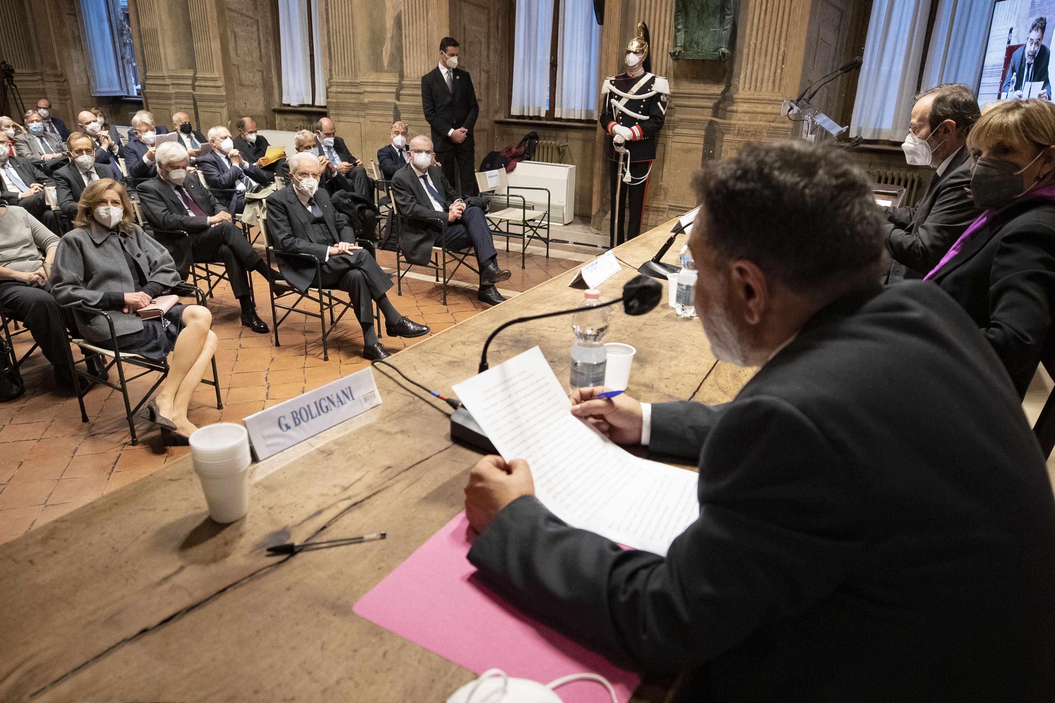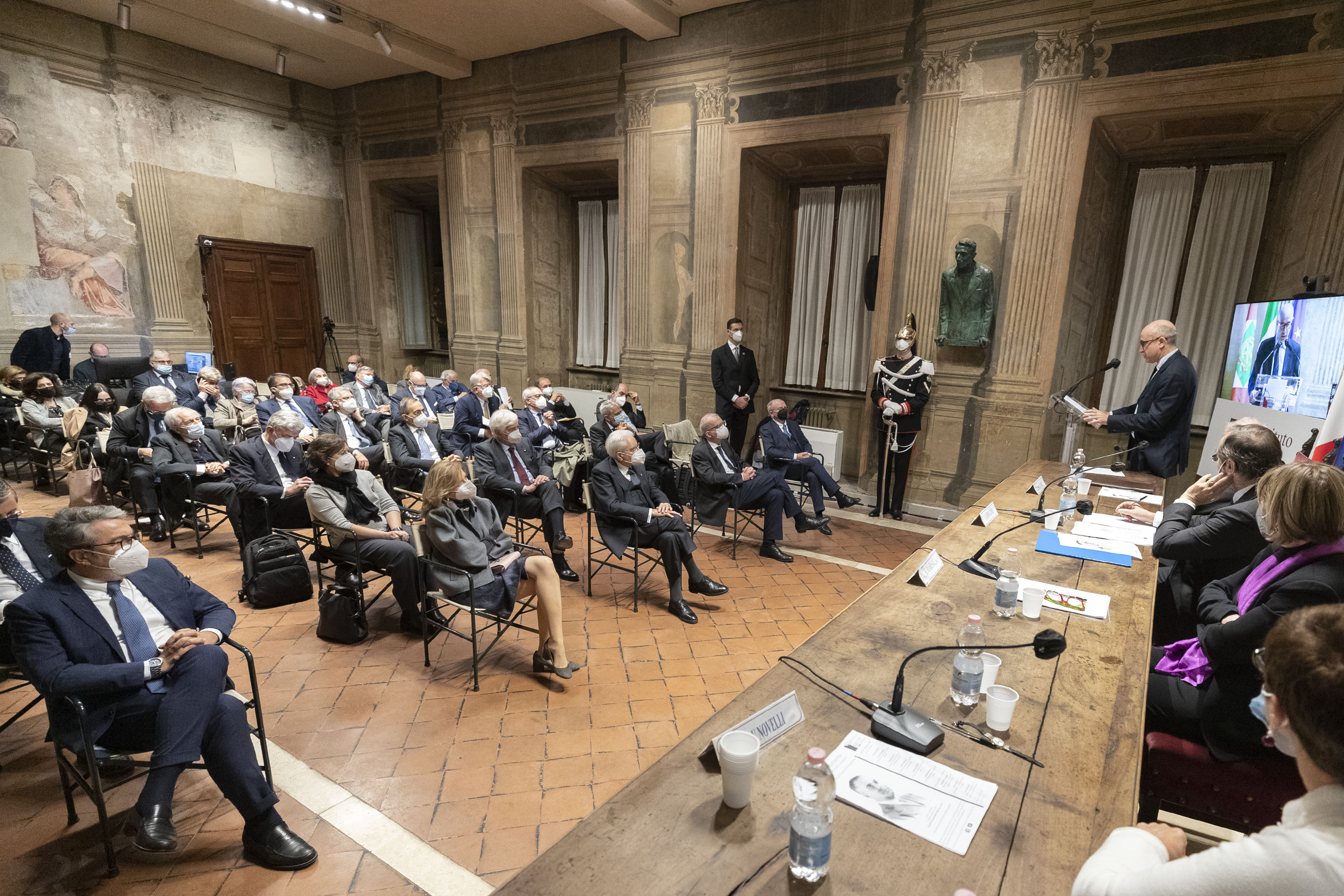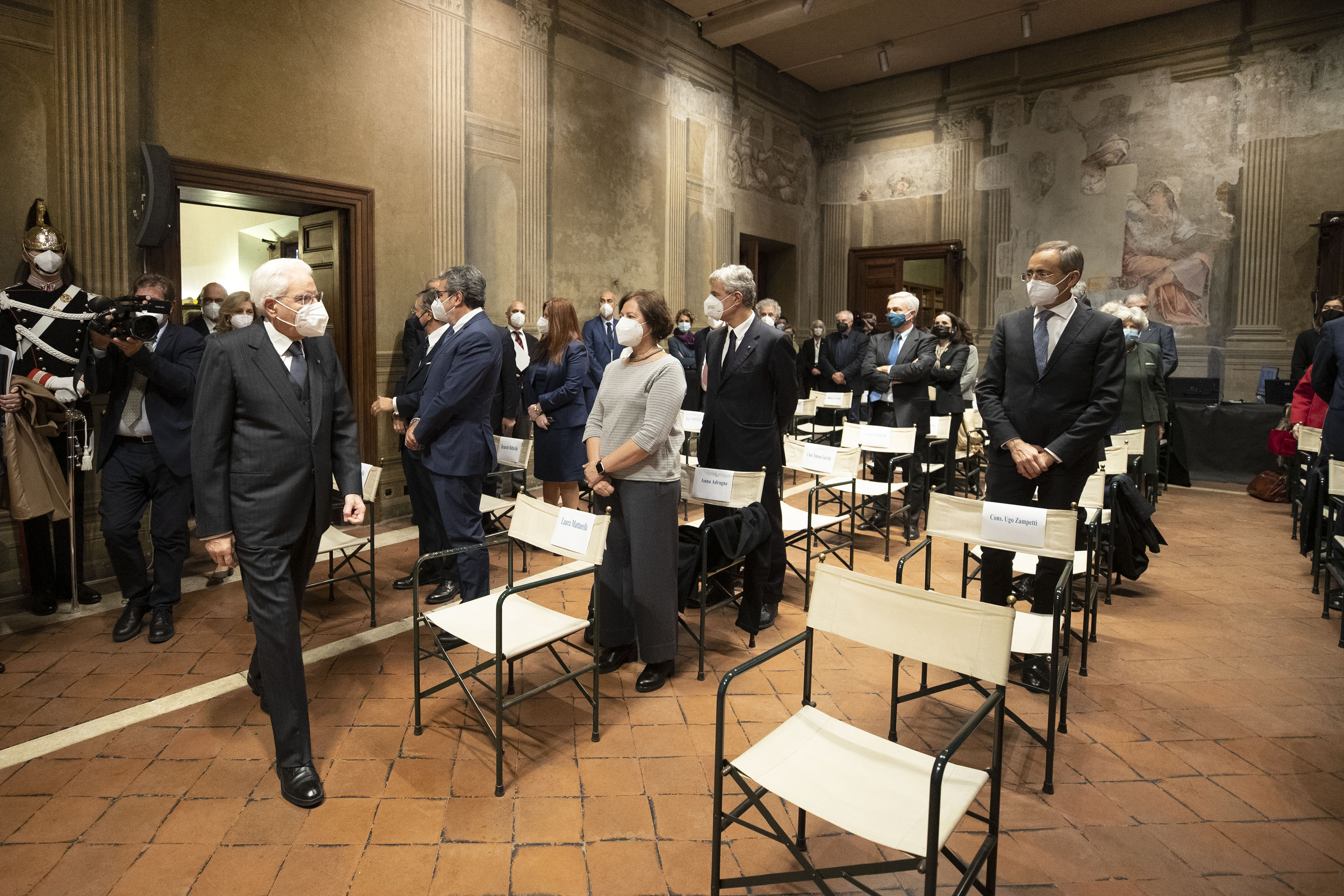 Il Presidente della Repubblica Sergio Mattarella accolto da Agostino Giovagnoli, Professore ordinario di Storia contemporanea presso l’Università Cattolica del Sacro Cuore di Milano, in occasione della commemorazione del cinquantesimo della scomparsa di Bernardo Mattarella - La Sicilia, la D.C., la Storia della Repubblica