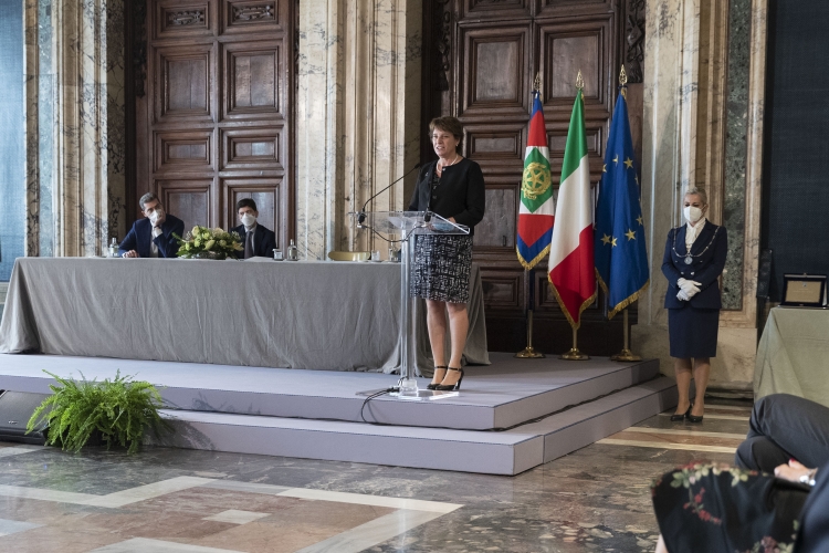 Il Presidente della Repubblica Sergio Mattarella consegna il Premio speciale AIRC “Credere nella Ricerca” alla Dott.ssa Geppi Cucciari