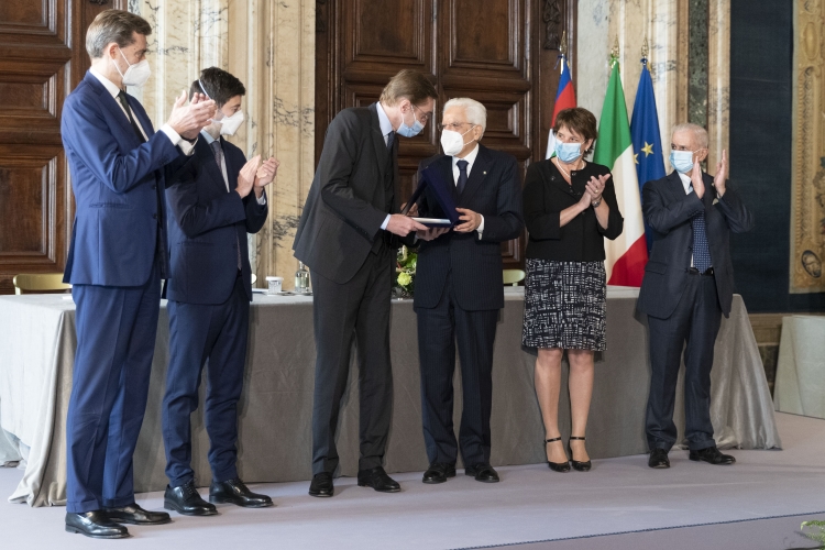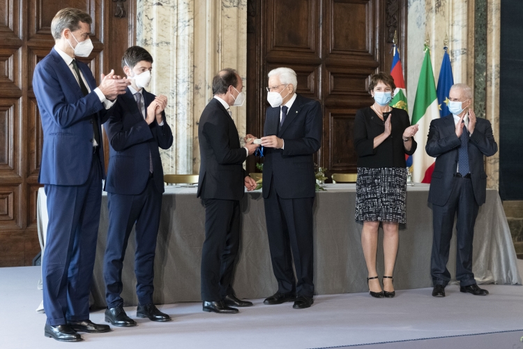 Il Presidente della Repubblica Sergio Mattarella consegna il Premio biennale “Beppe Della Porta” al Prof. Enrico Tiacci dell’Università degli Studi di Perugia