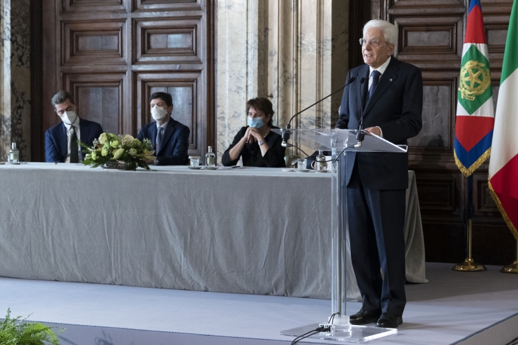 Il Presidente della Repubblica Sergio Mattarella durante la cerimonia di celebrazione de “I Giorni della Ricerca”