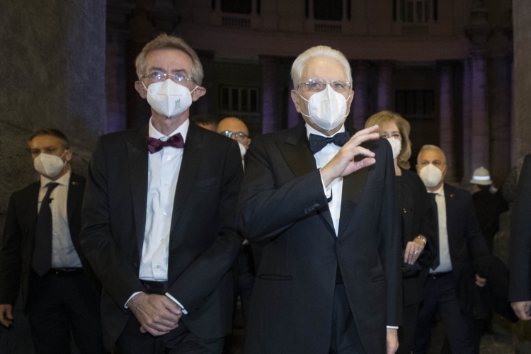 Il Presidente della Repubblica Sergio Mattarella al Teatro San Carlo di Napoli,con Gaetano Manfredi, Sindaco di Napoli,in occasione della rappresentazione dell'opera “Otello” di Giuseppe Verdi