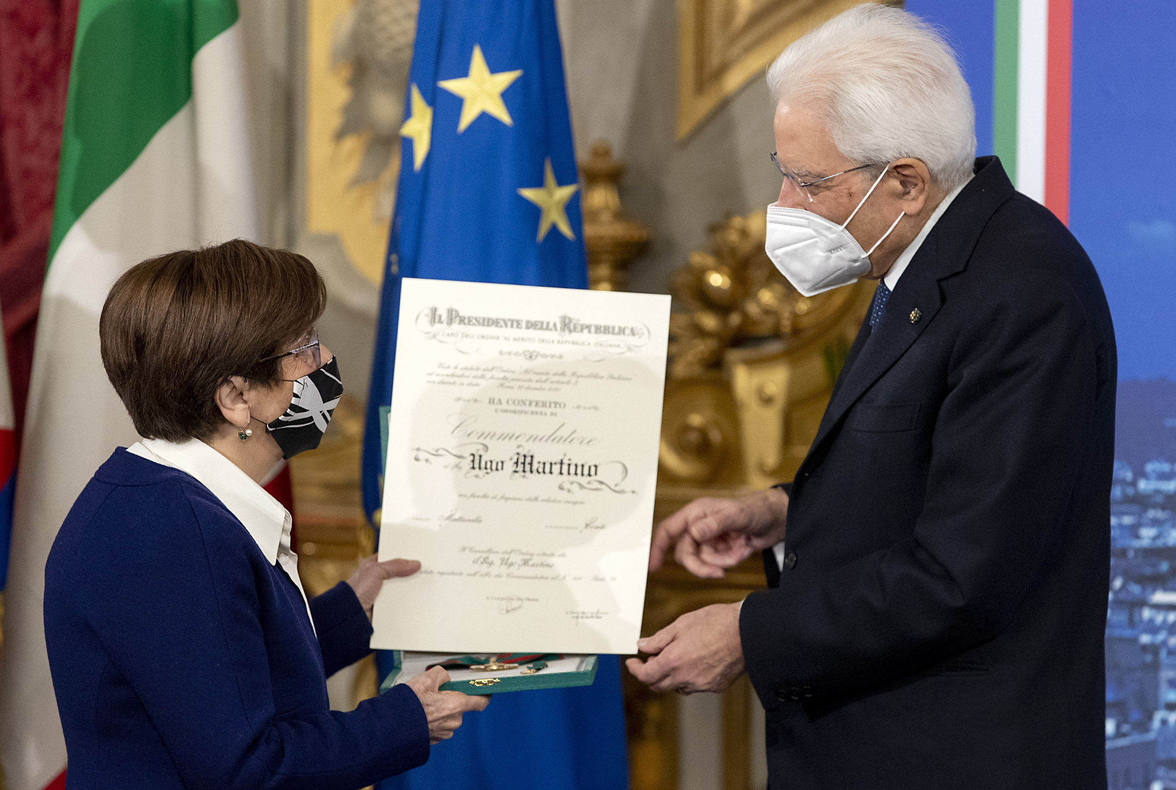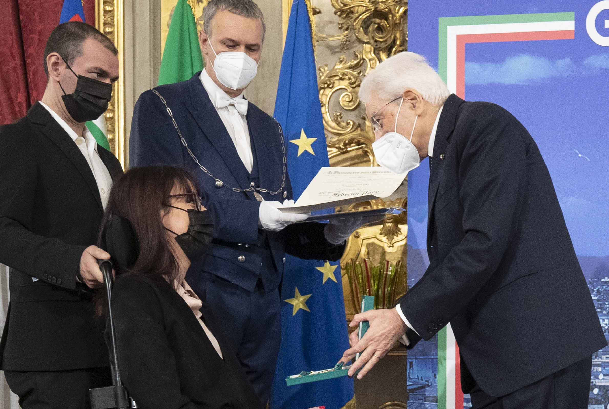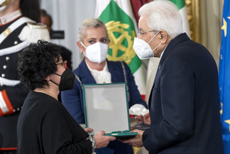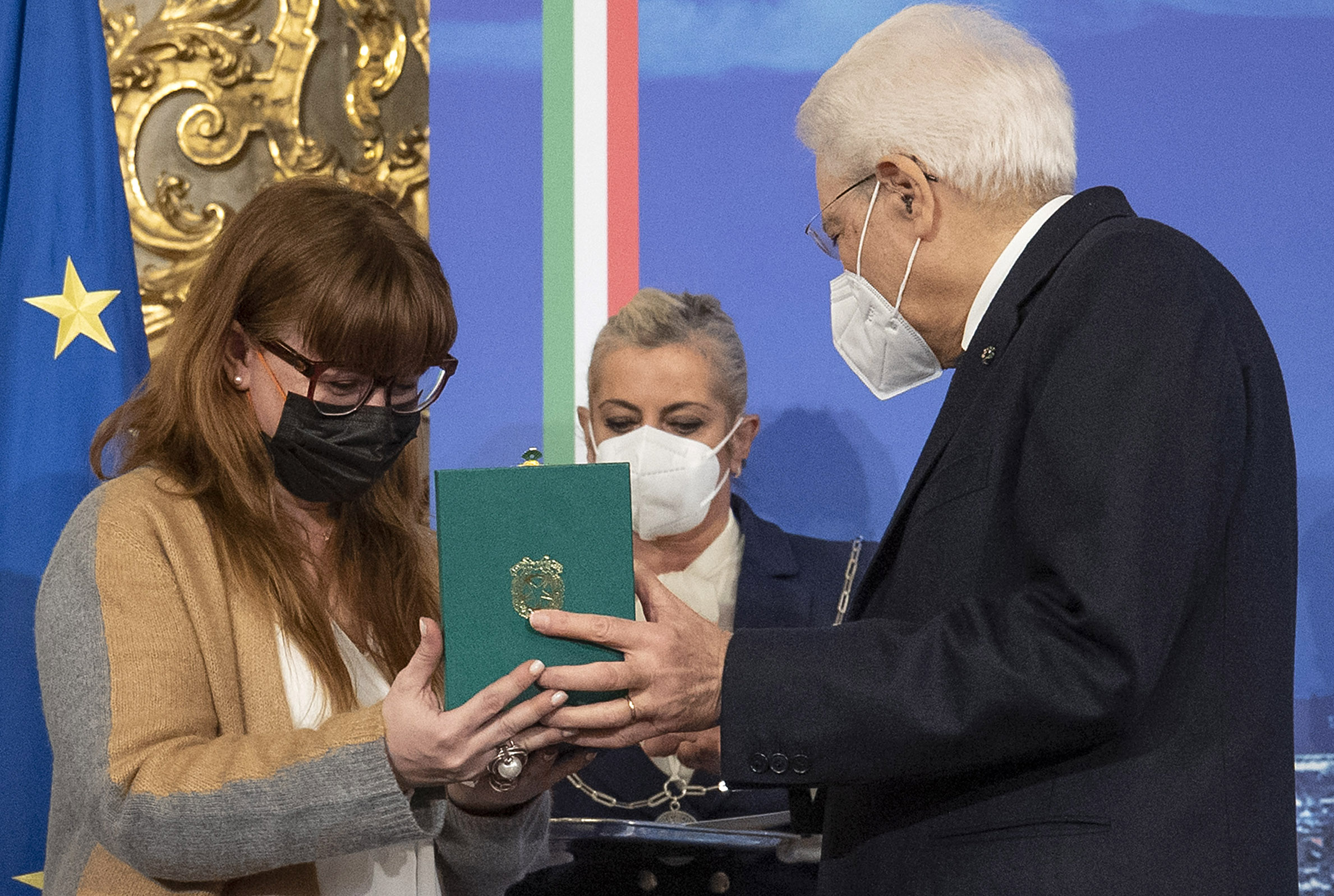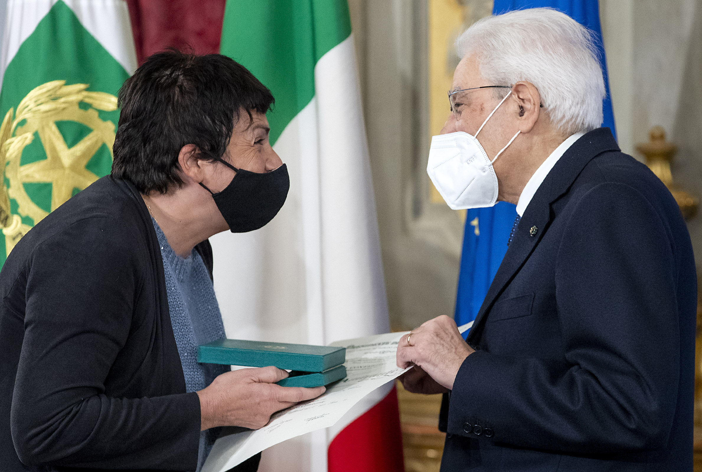 Il Presidente Sergio Mattarella consegna l'onorificenza OMRI “motu proprio” a Fausta Pina