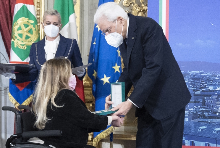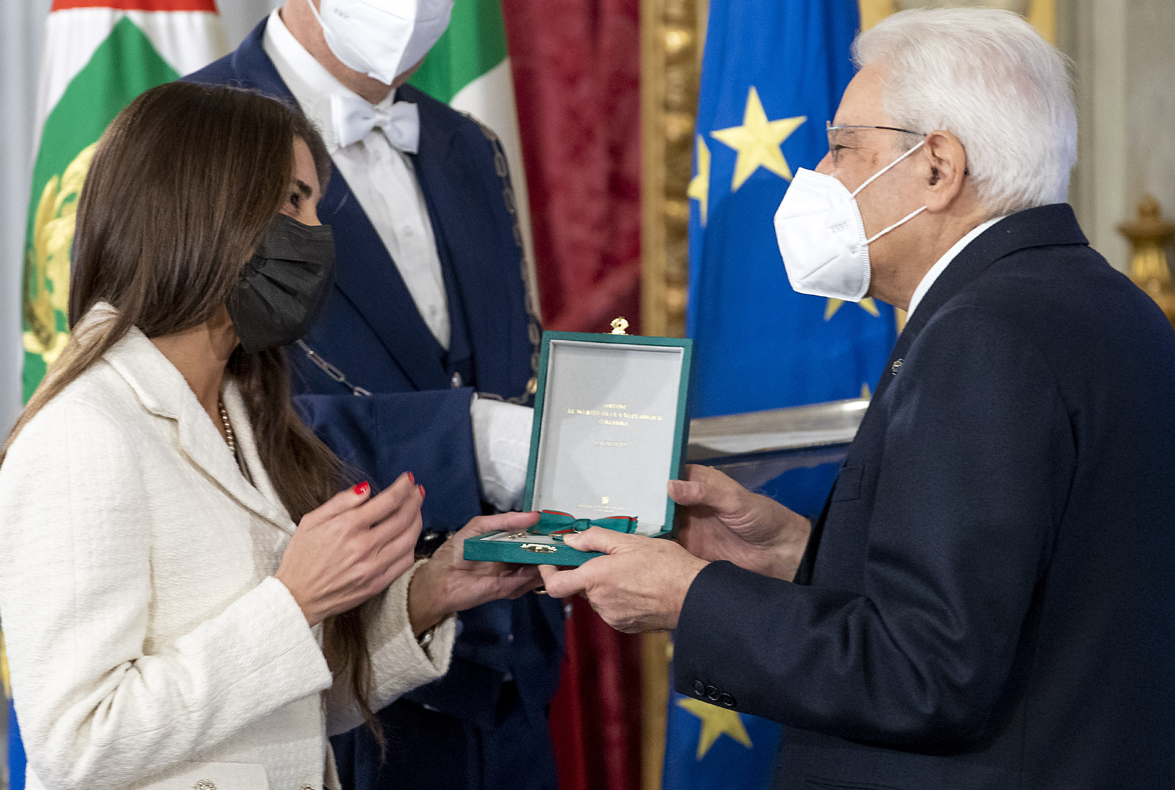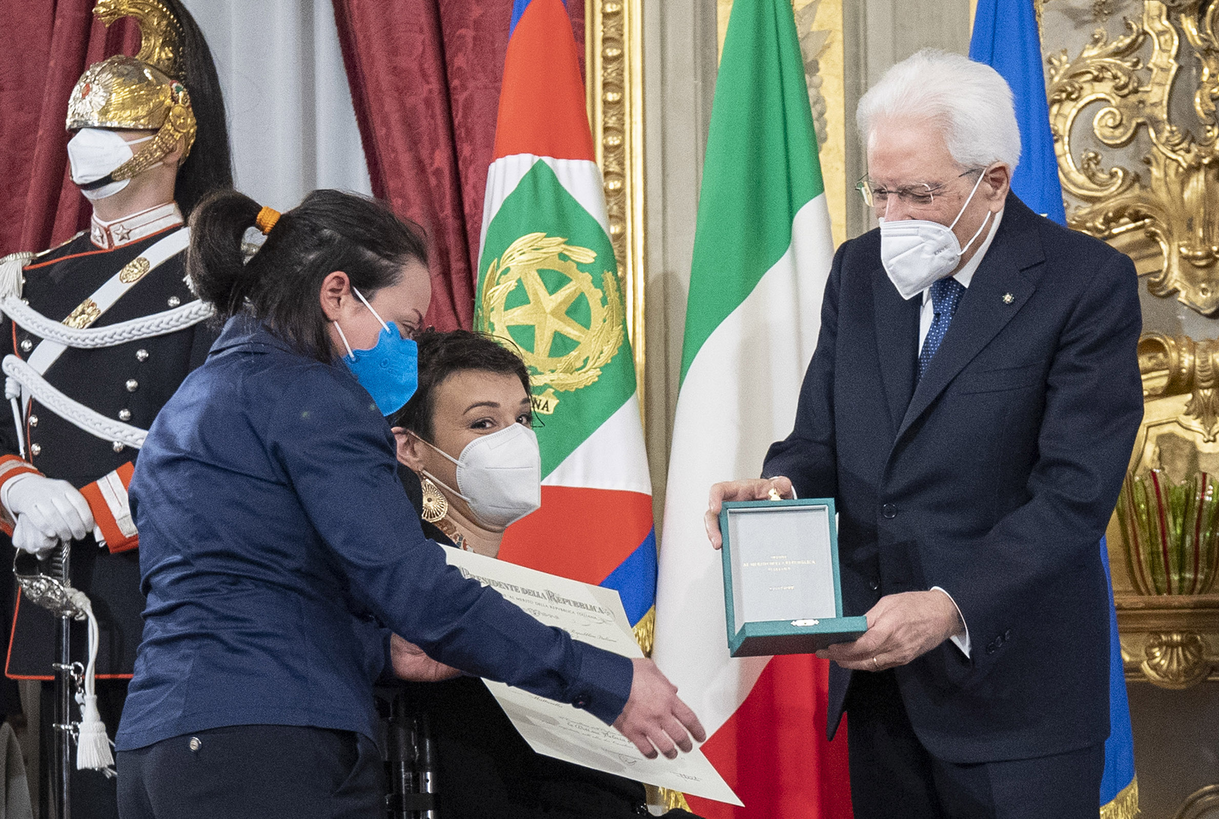 Il Presidente Sergio Mattarella consegna l'onorificenza OMRI “motu proprio” a Federica Pace