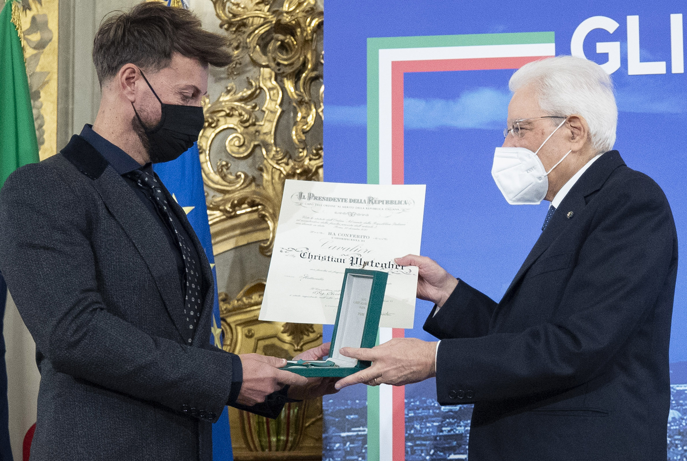 Il Presidente Sergio Mattarella consegna l'onorificenza OMRI “motu proprio” a Christian Plotegher
