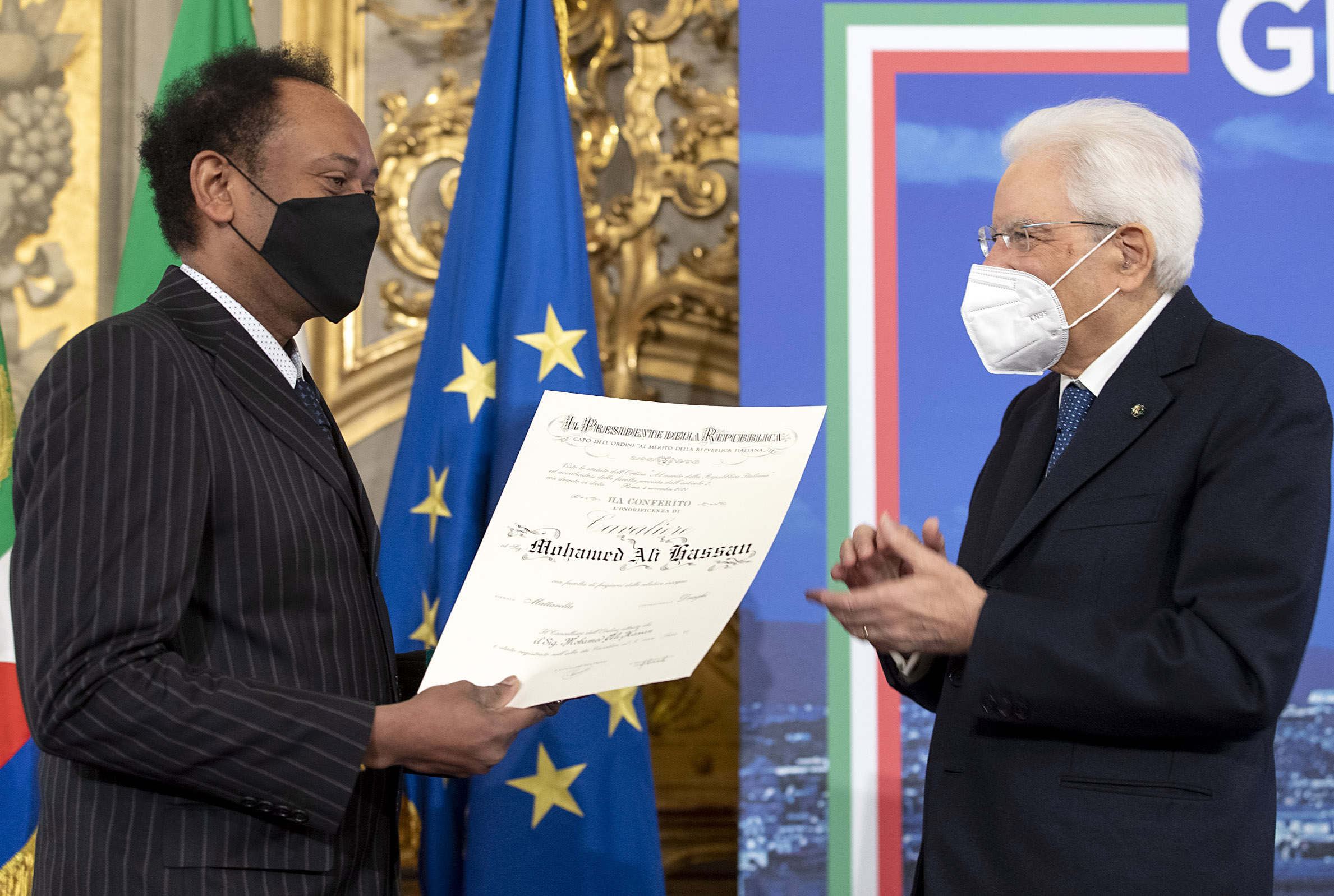 Il Presidente Sergio Mattarella consegna l'onorificenza OMRI “motu proprio” a Mohamed Alì Hassan