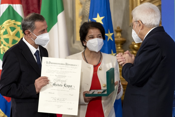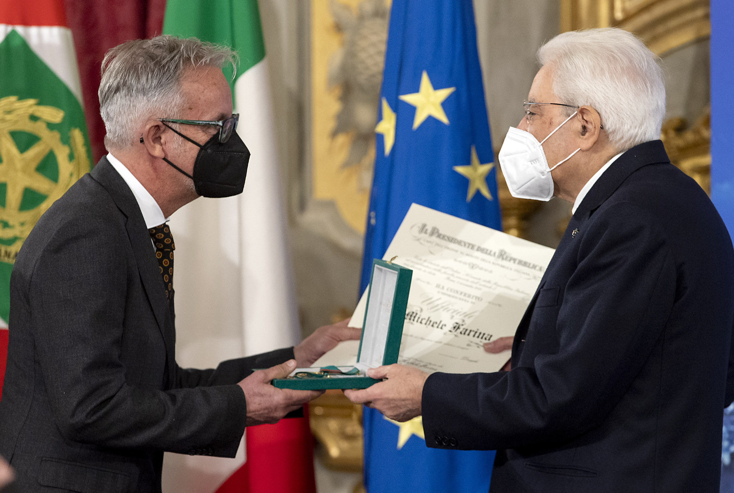 Il Presidente Sergio Mattarella consegna l'onorificenza OMRI “motu proprio” a Michele Farina