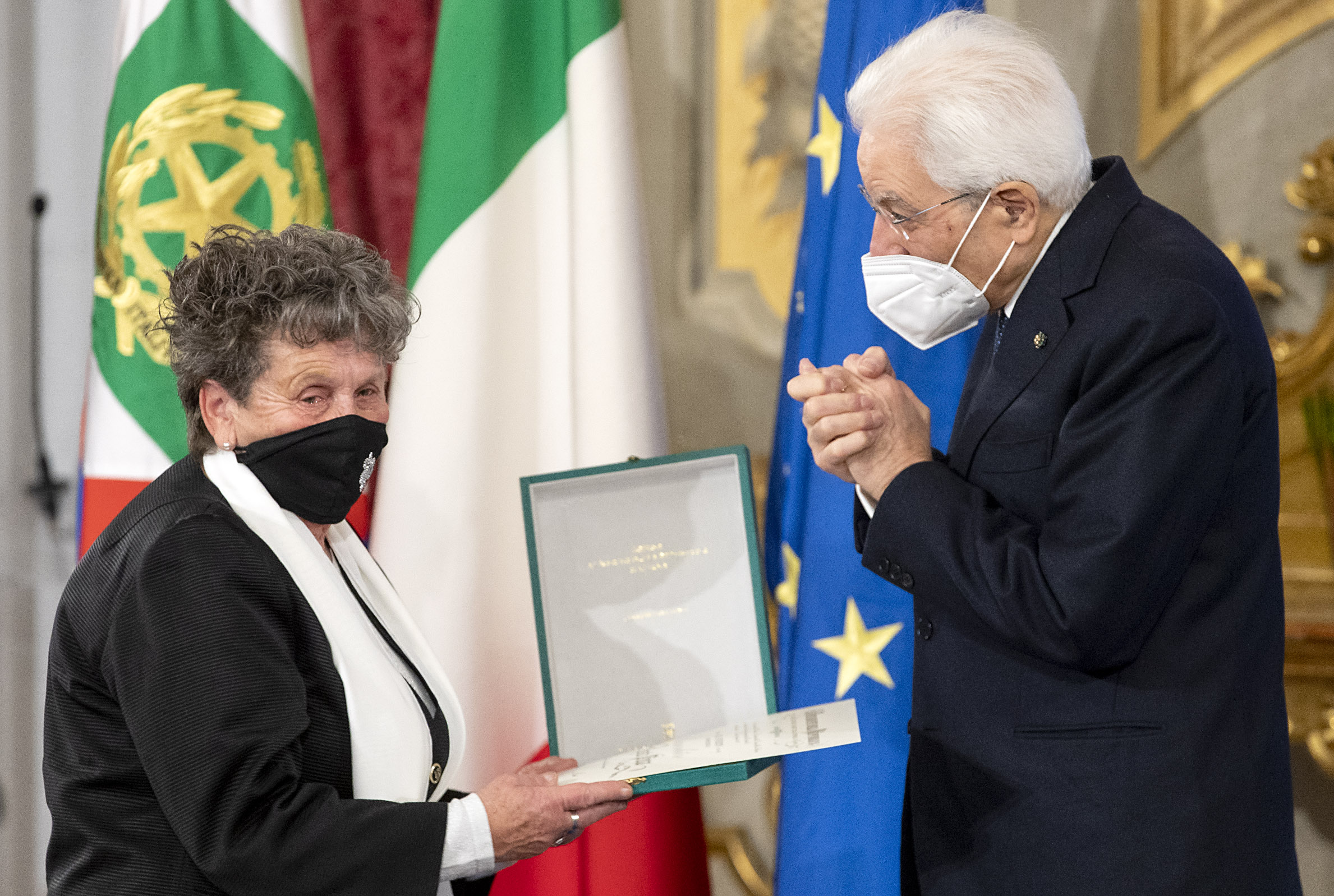 Il Presidente Sergio Mattarella consegna l'onorificenza OMRI “motu proprio” a Maria Tarì