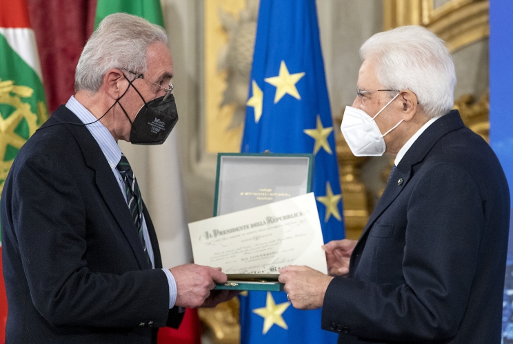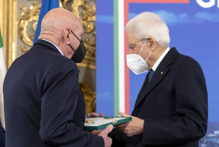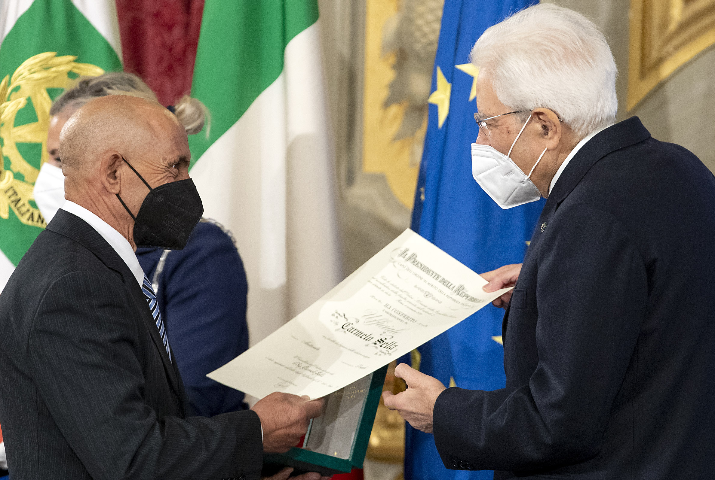 Il Presidente Sergio Mattarella consegna l'onorificenza OMRI “motu proprio” a Carmelo Sella
