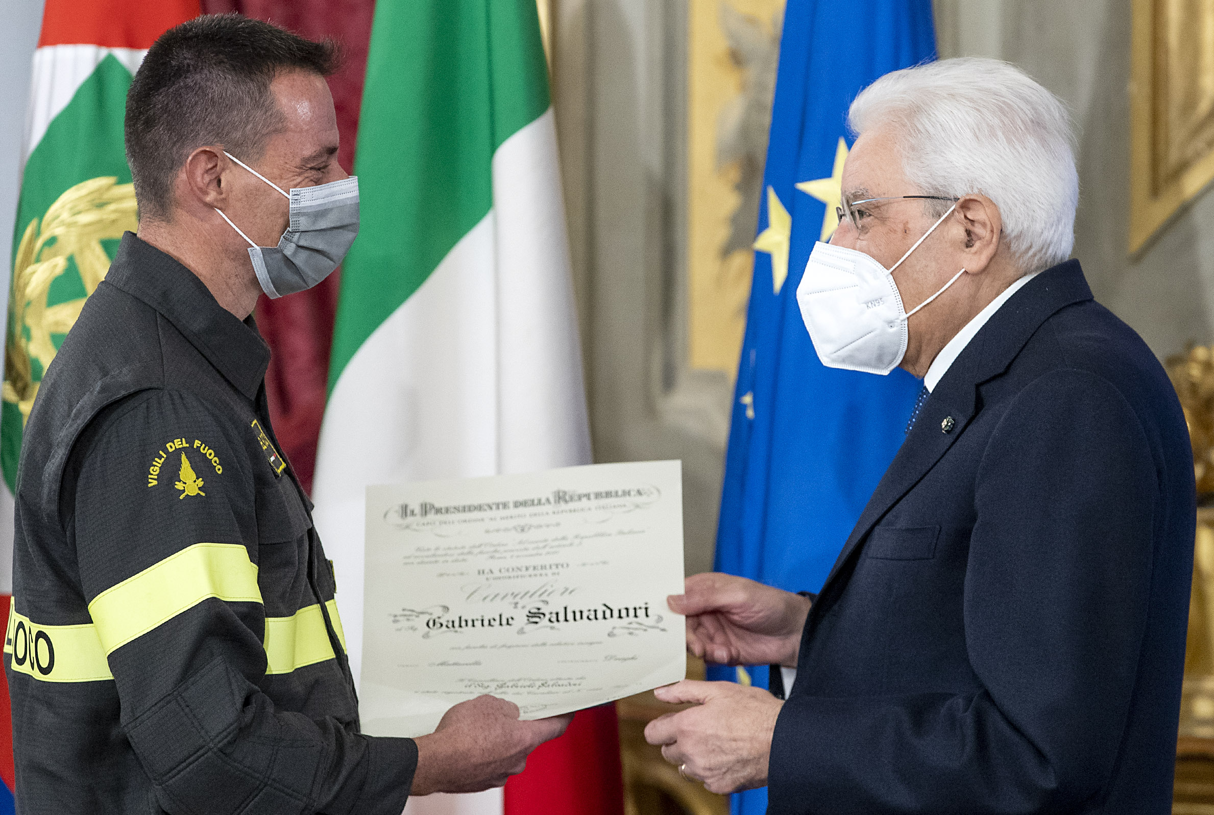 Il Presidente Sergio Mattarella nel corso della cerimonia di consegna delle onorificenze OMRI conferite “motu proprio” dal Presidente della Repubblica a cittadini distintisi per atti di eroismo e impegno civile