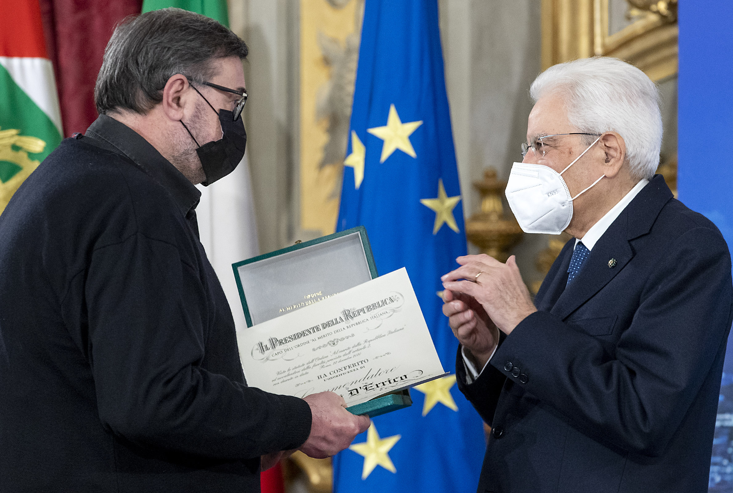 Il Presidente Sergio Mattarella consegna l'onorificenza OMRI “motu proprio” a Stefano Tavilla