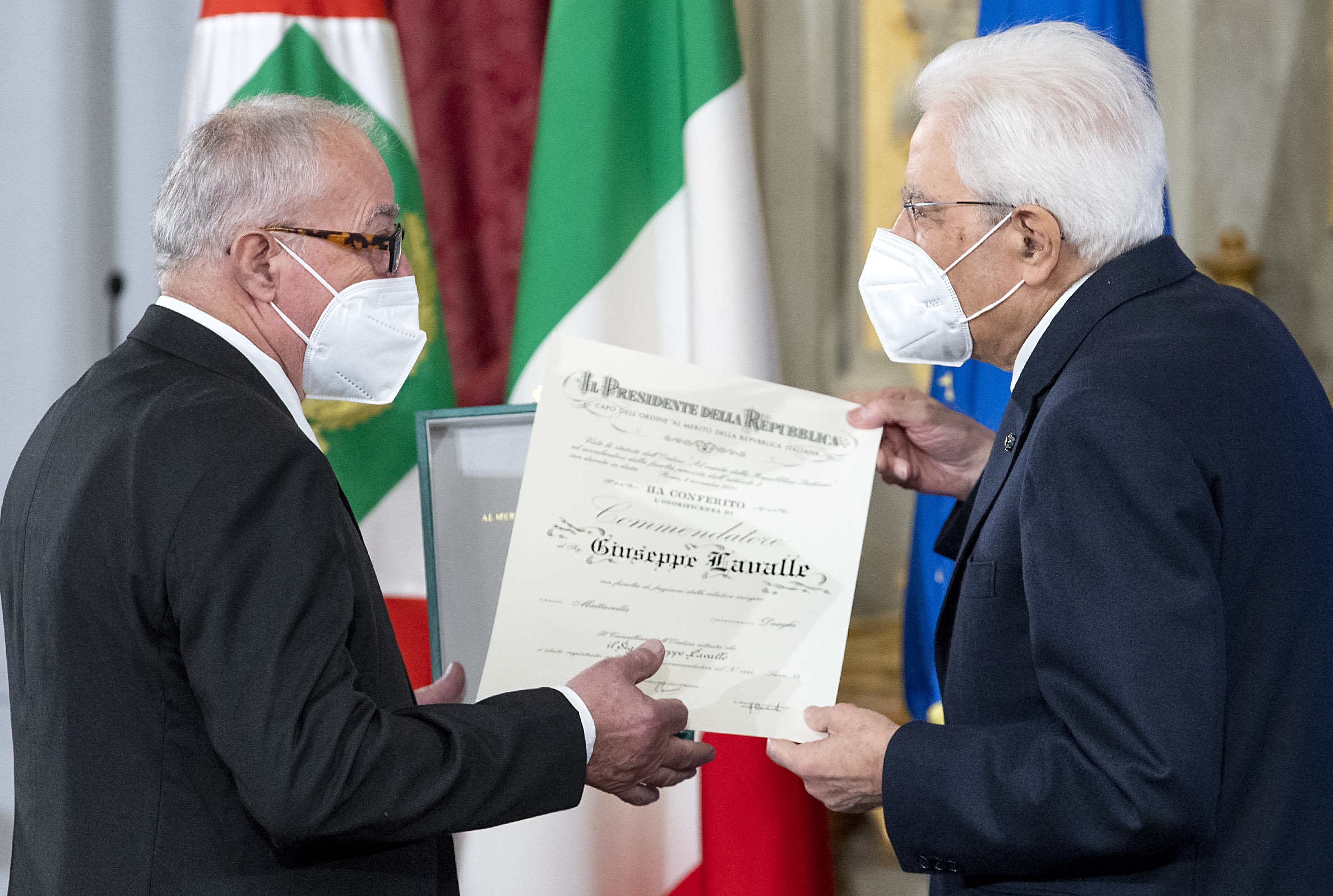 Il Presidente Sergio Mattarella consegna l'onorificenza OMRI “motu proprio” a Giuseppe Lavalle