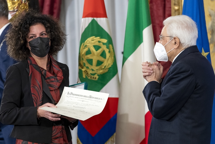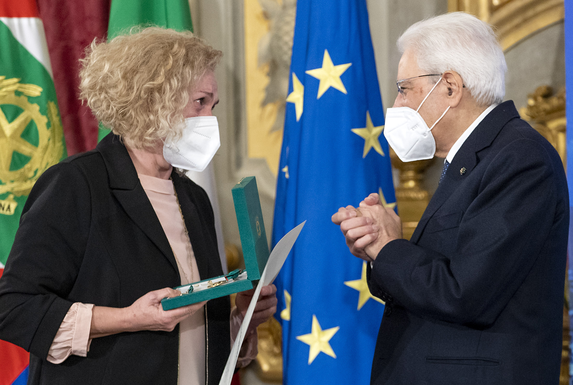 Il Presidente Sergio Mattarella consegna l'onorificenza OMRI “motu proprio” a Cristina Zambonini