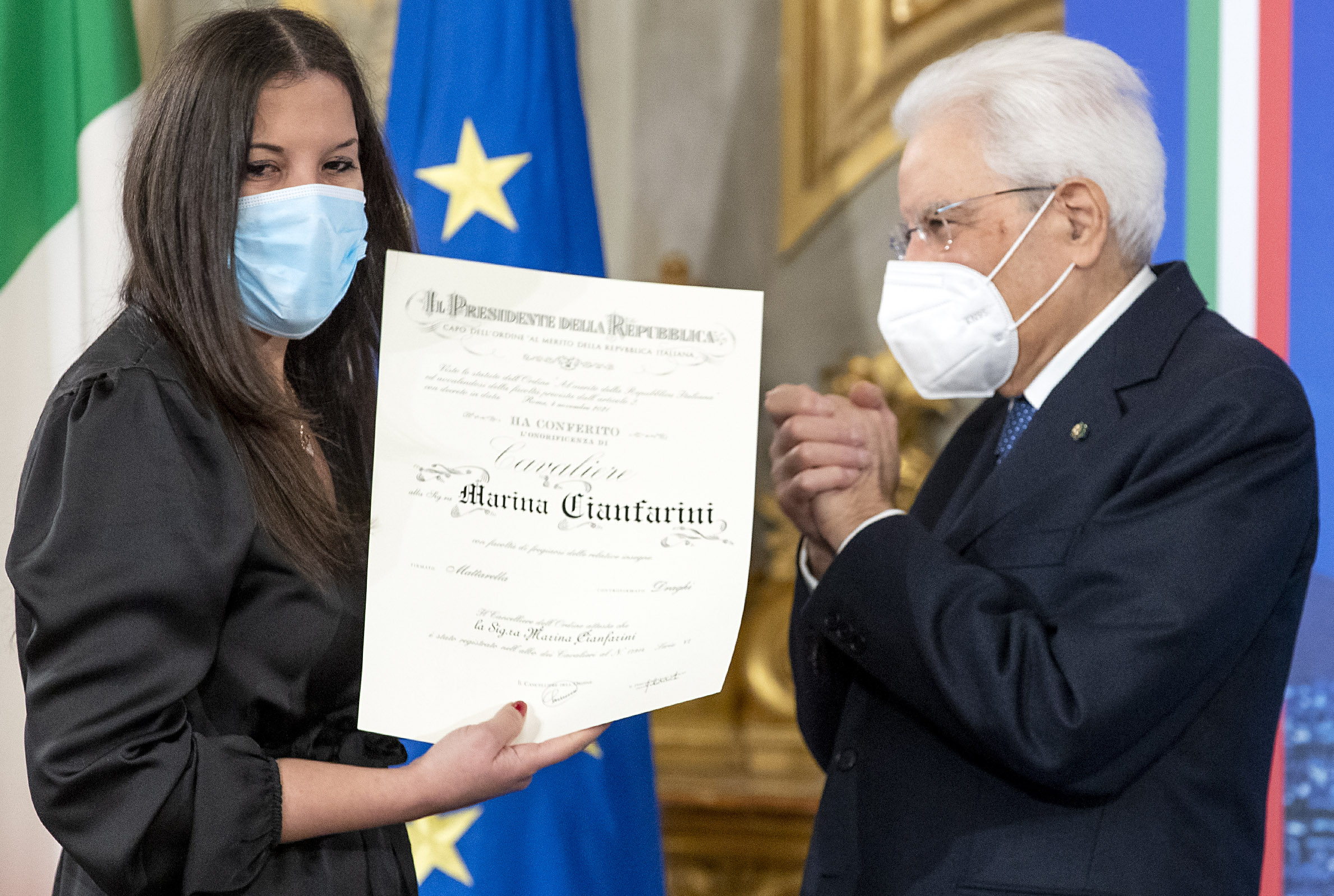 Il Presidente Sergio Mattarella consegna l'onorificenza OMRI “motu proprio” a Martina Pigliapoco