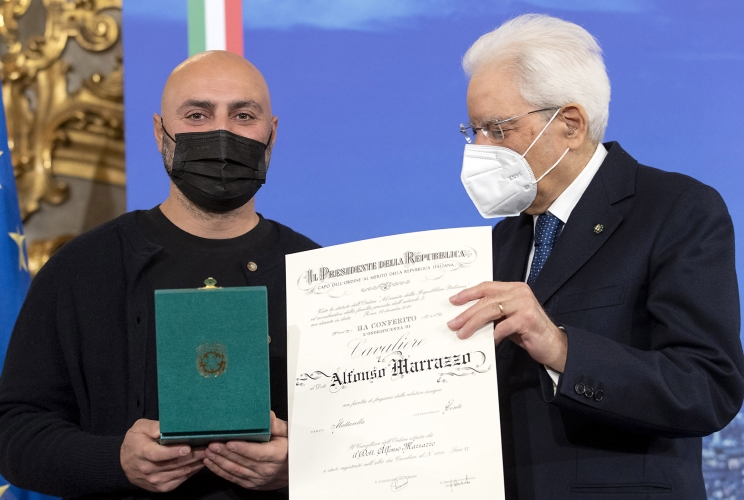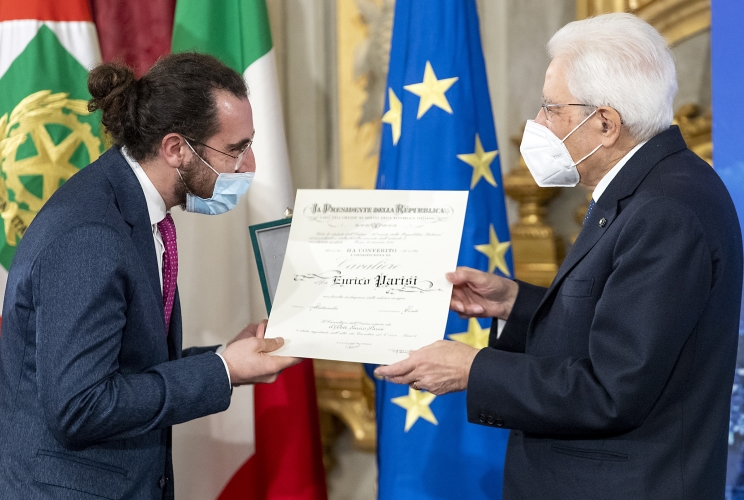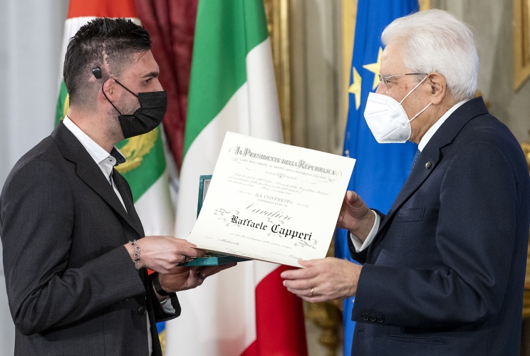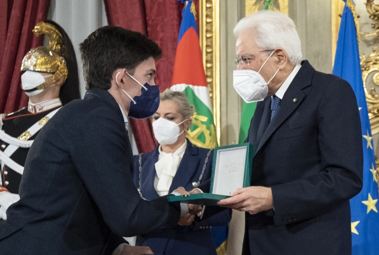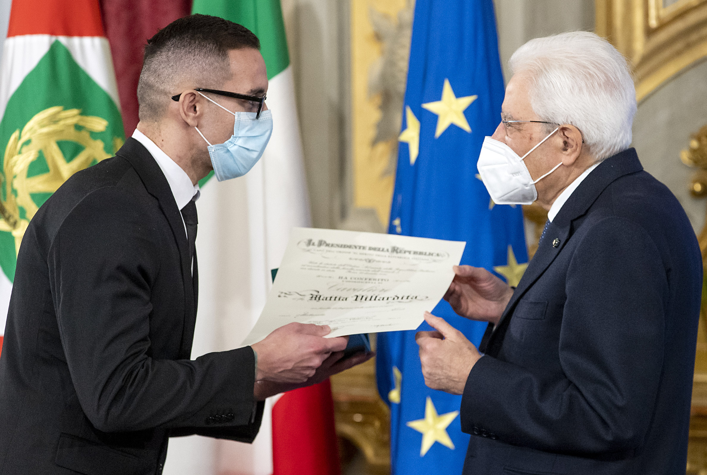 Il Presidente Sergio Mattarella consegna l'onorificenza OMRI “motu proprio” a Mattia Villardita