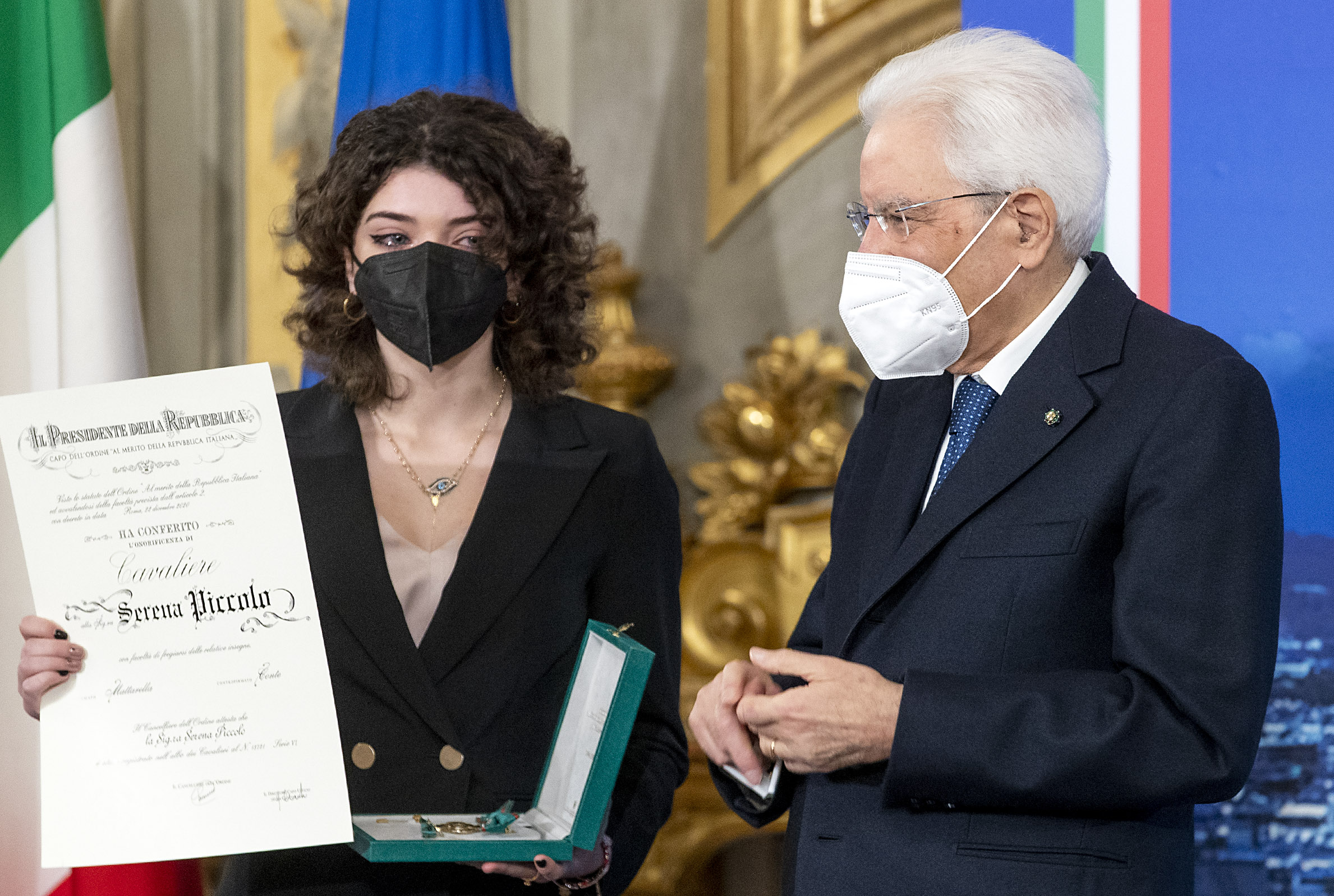 Il Presidente Sergio Mattarella consegna l'onorificenza OMRI “motu proprio” a Serena Piccolo