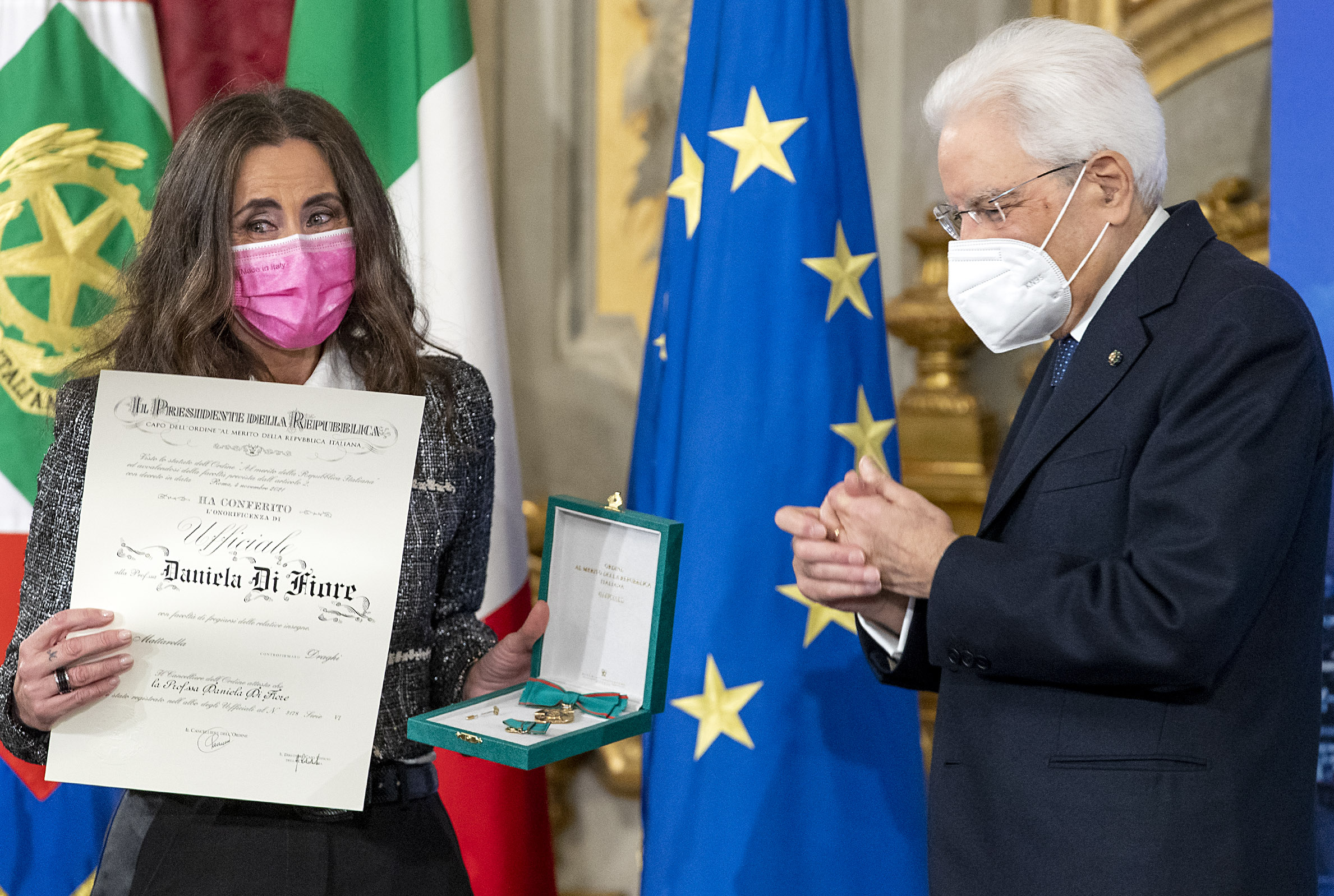 Il Presidente Sergio Mattarella consegna l'onorificenza OMRI “motu proprio” a Daniela Di Fiore