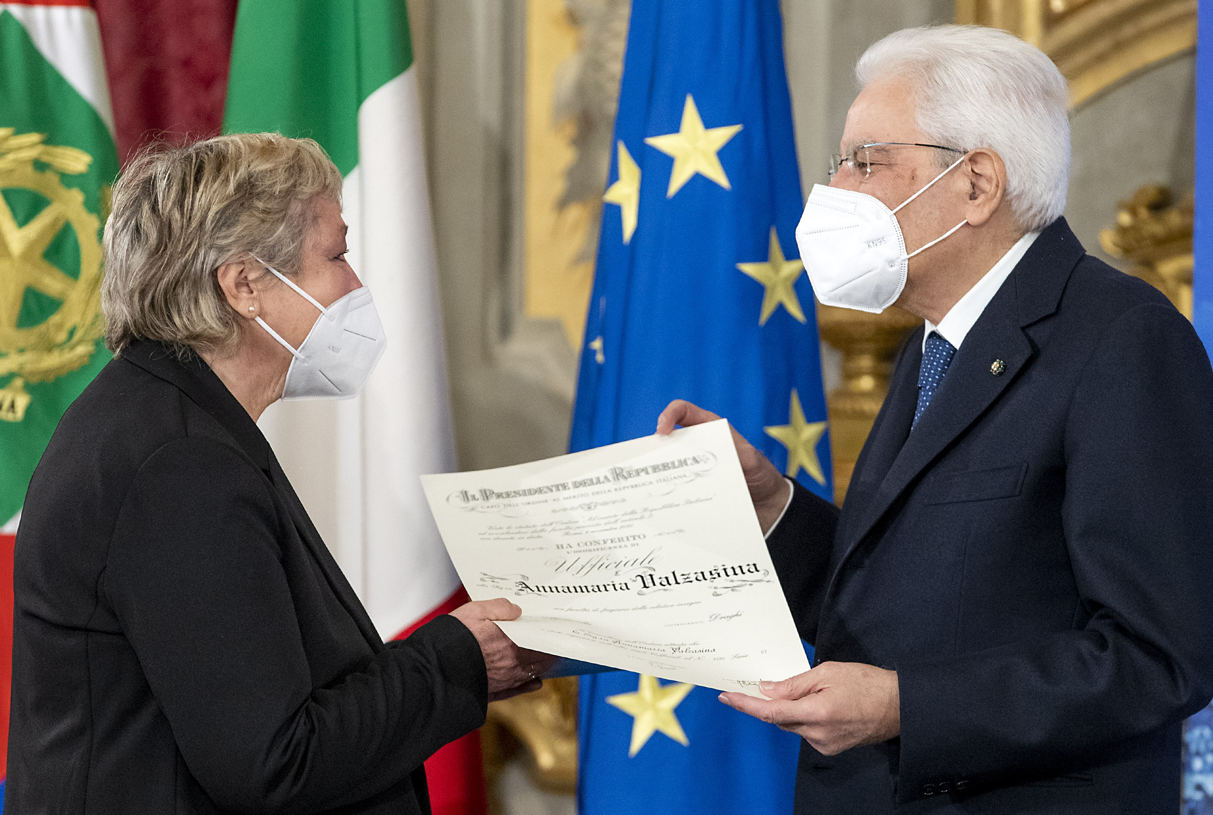 Il Presidente Sergio Mattarella consegna l'onorificenza OMRI “motu proprio” a Annamaria Valzasina
