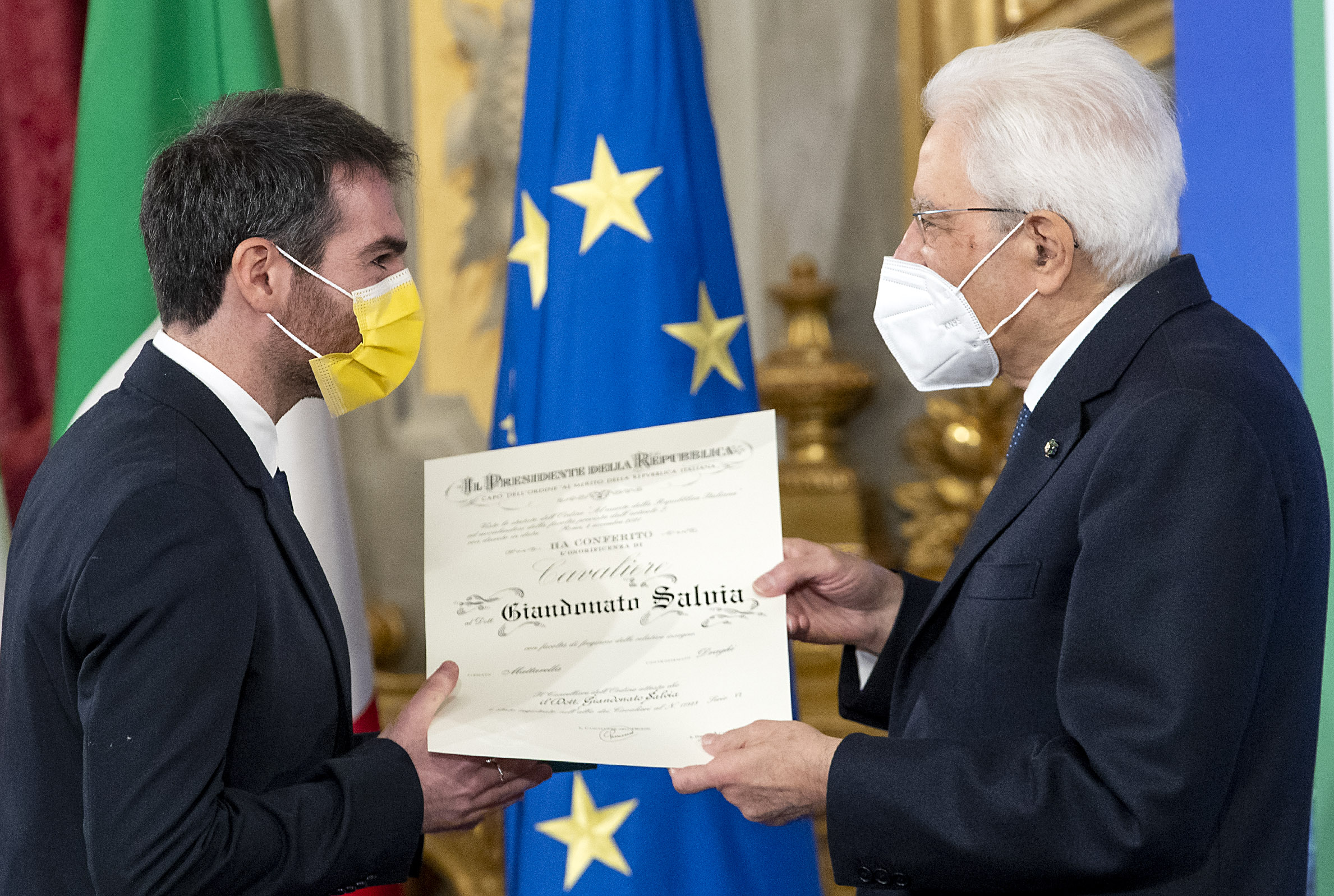Il Presidente Sergio Mattarella consegna l'onorificenza OMRI “motu proprio” a Giandonato Salvia